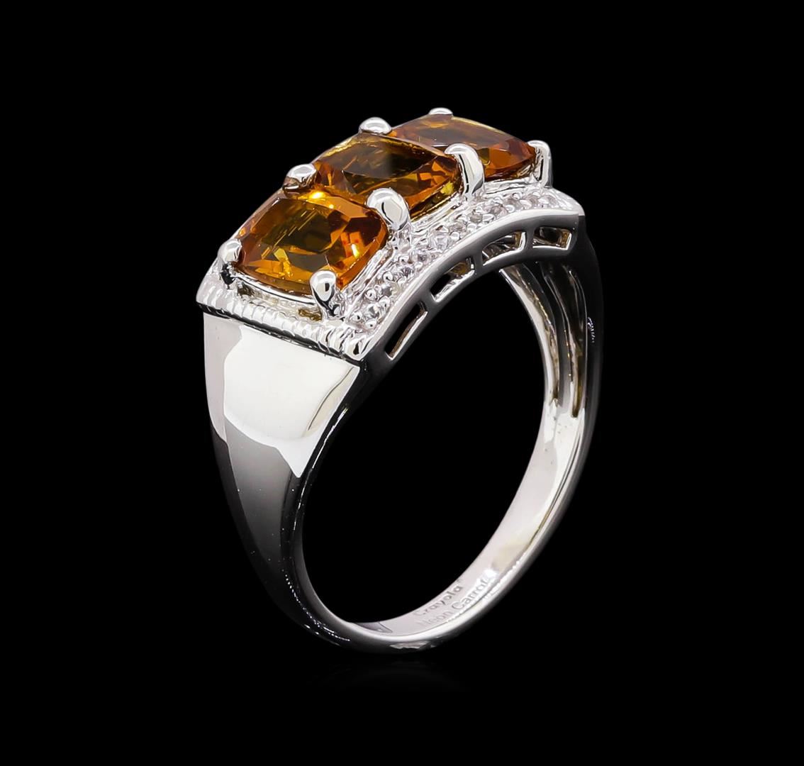 From the brand whose products have inspired creative expression for more than 110 years comes this beautiful ring by Crayola. This stunning piece of jewelry reflects the image and colorful personality of the Crayola brand. The Ring features .925 Silver With Rhodium weighing 4.77oz containing Neon Carrot Citrine (AAA) Cushion 7x5mm - 3Pcs + White Sapphire Dia Cut Round 1.00mm - 22Pcs (With J BACK). Total Citrine weight is 2.4ct. Total White Sapphire weight is 0.11ct.