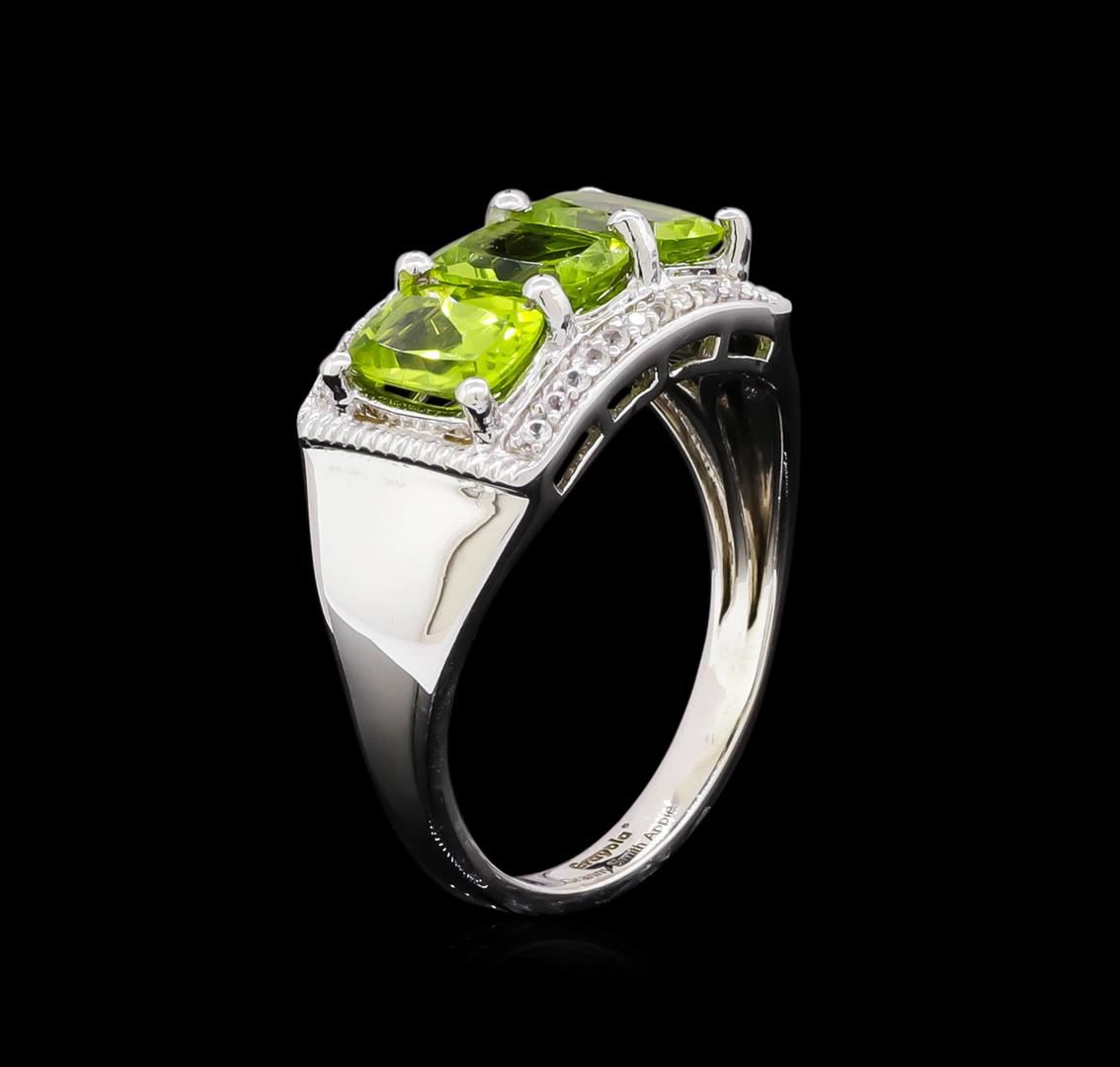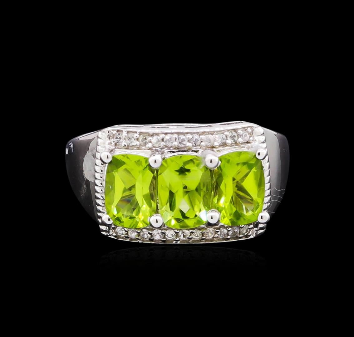 From the brand whose products have inspired creative expression for more than 110 years comes this beautiful ring by Crayola. This stunning piece of jewelry reflects the image and colorful personality of the Crayola brand. The Ring features .925 Silver With Rhodium weighing 4.77oz containing Granny Smith Apple Peridot (AAA) Cushion 7x5mm - 3Pcs + White Sapphire Dia Cut Round 1.00mm - 22Pcs (With J BACK). Total Peridot weight is 2.4ct. Total White Sapphire weight is 0.11ct.