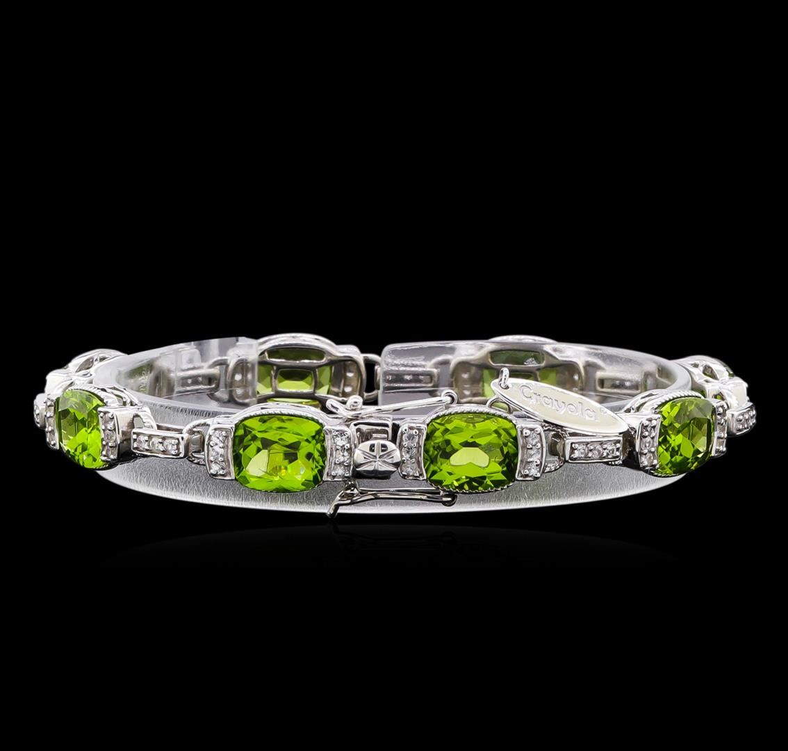 From the brand whose products have inspired creative expression for more than 110 years comes this beautiful bracelet by Crayola. This stunning piece of jewelry reflects the image and colorful personality of the Crayola brand. The Bracelet features .925 Silver With Rhodium weighing 17.73oz containing Granny Smith Apple Peridot (AAA) Cushion 10x8mm - 8Pcs + Natural White Sapphire Round 1.50mm - 69Pcs (With J BACK). Total Peridot weight is 20ct. Total White Sapphire weight is 1.17ct. Measures: 7.50".