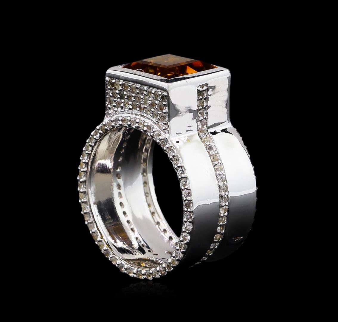 From the brand whose products have inspired creative expression for more than 110 years comes this beautiful ring by Crayola. This stunning piece of jewelry reflects the image and colorful personality of the Crayola brand. The Ring features .925 Silver With Rhodium weighing 8.2oz containing Neon Carrot Citrine (AAA) Square 9.00mm - 1Pc + Natural White Sapphire Round 1.10mm - 195Pcs (With J BACK). Total Citrine weight is 3.5ct. Total White Sapphire weight is 1.76ct.