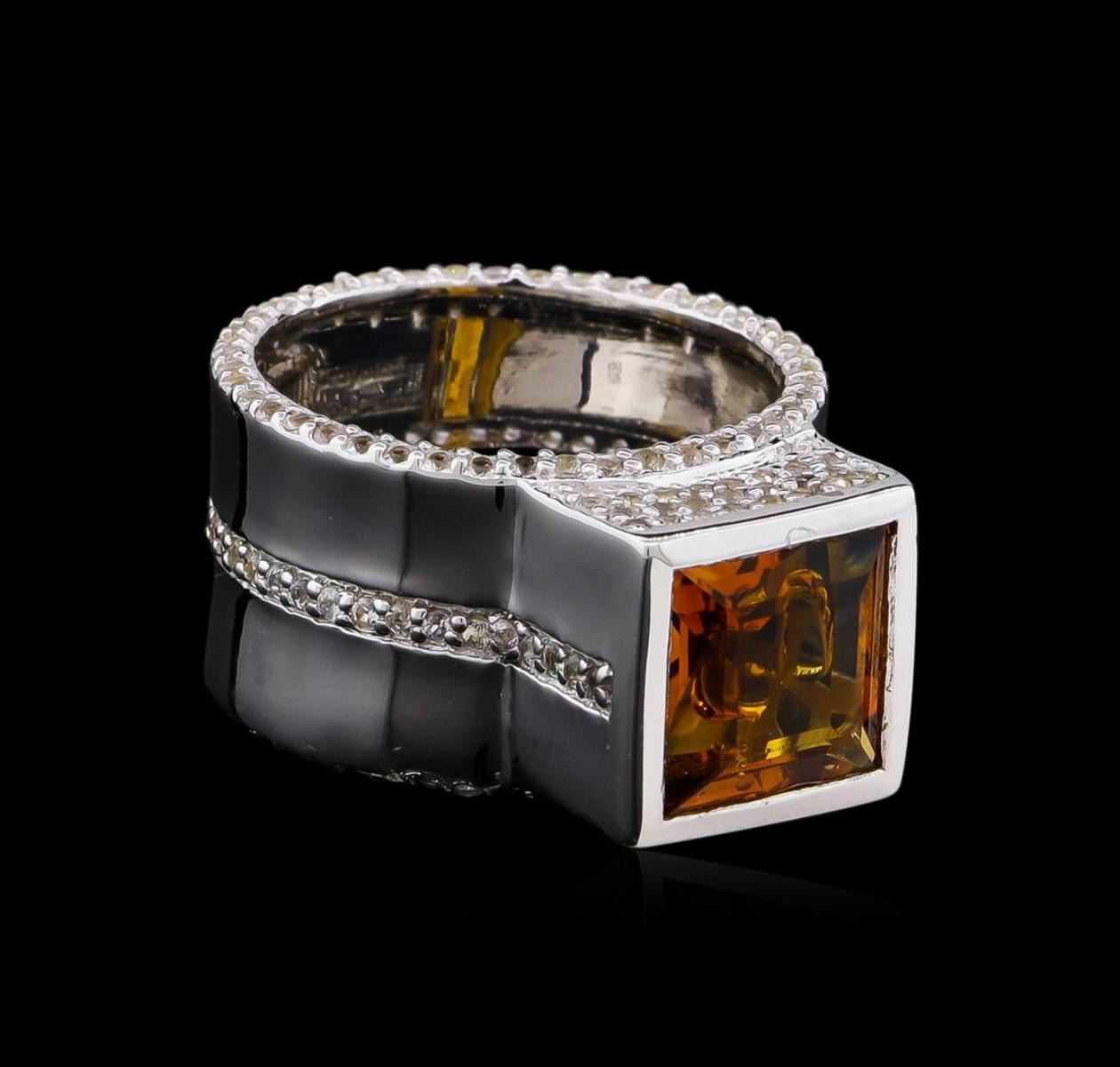 From the brand whose products have inspired creative expression for more than 110 years comes this beautiful ring by Crayola. This stunning piece of jewelry reflects the image and colorful personality of the Crayola brand. The Ring features .925 Silver With Rhodium weighing 8.2oz containing Neon Carrot Citrine (AAA) Square 9.00mm - 1Pc + Natural White Sapphire Round 1.10mm - 195Pcs (With J BACK). Total Citrine weight is 3.5ct. Total White Sapphire weight is 1.76ct.