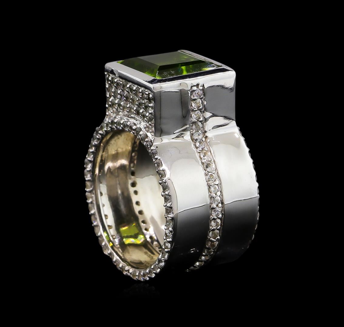 From the brand whose products have inspired creative expression for more than 110 years comes this beautiful ring by Crayola. This stunning piece of jewelry reflects the image and colorful personality of the Crayola brand. The Ring features .925 Silver With Rhodium weighing 8.2oz containing Granny Smith Apple Peridot (AAA) Square 9.00mm - 1Pc + Natural White Sapphire Round 1.10mm - 195Pcs (With J BACK). Total Peridot weight is 3.5ct. Total White Sapphire weight is 1.76ct.