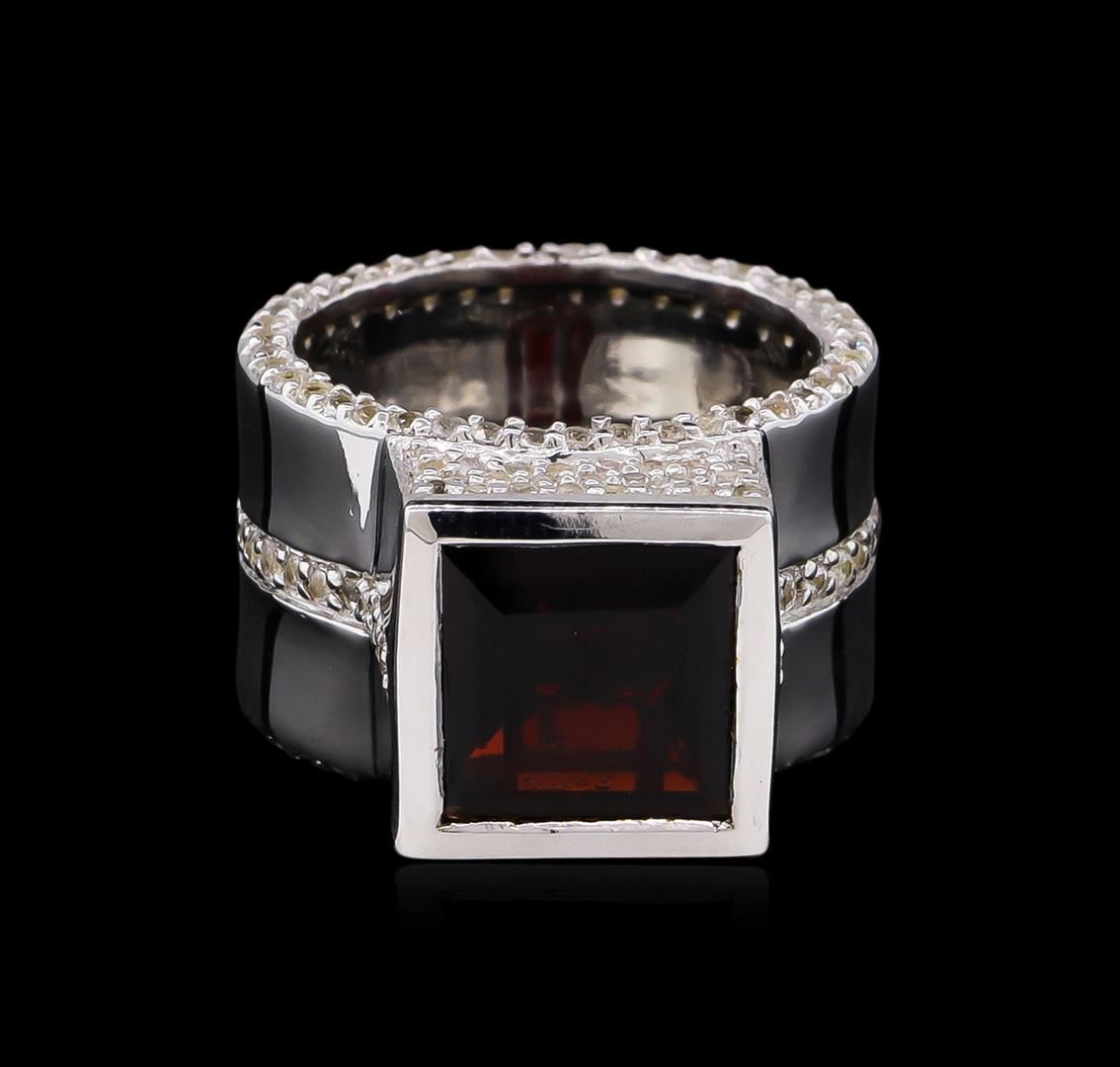 From the brand whose products have inspired creative expression for more than 110 years comes this beautiful ring by Crayola. This stunning piece of jewelry reflects the image and colorful personality of the Crayola brand. The Ring features .925 Silver With Rhodium weighing 8.2oz containing Maroon Garnet (AAA) Square 9.00mm - 1Pc + Natural White Sapphire Round 1.10mm - 195Pcs (With J BACK). Total Garnet weight is 4.2ct. Total White Sapphire weight is 1.76ct.