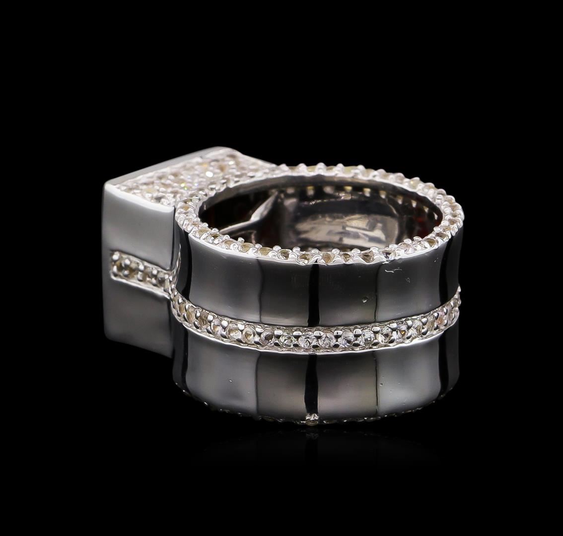 From the brand whose products have inspired creative expression for more than 110 years comes this beautiful ring by Crayola. This stunning piece of jewelry reflects the image and colorful personality of the Crayola brand. The Ring features .925 Silver With Rhodium weighing 8.2oz containing Maroon Garnet (AAA) Square 9.00mm - 1Pc + Natural White Sapphire Round 1.10mm - 195Pcs (With J BACK). Total Garnet weight is 4.2ct. Total White Sapphire weight is 1.76ct.
