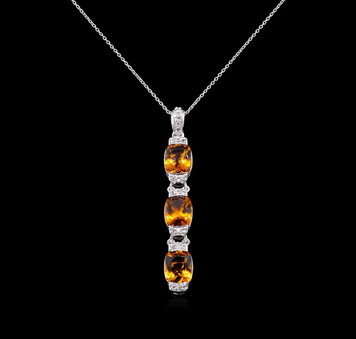 From the brand whose products have inspired creative expression for more than 110 years comes this beautiful pendant with chain by Crayola. This stunning piece of jewelry reflects the image and colorful personality of the Crayola brand. The Pendant With Chain features .925 Silver With Rhodium weighing 6.28oz containing Neon Carrot Citrine (AAA) Cushion 10x8mm - 3Pcs + Natural White Sapphire Round 1.50mm - 23Pcs (With J BACK). Total Citrine weight is 7.8ct. Total White Sapphire weight is 0.39ct. Measures: 18".