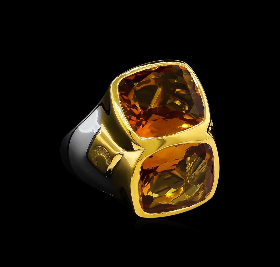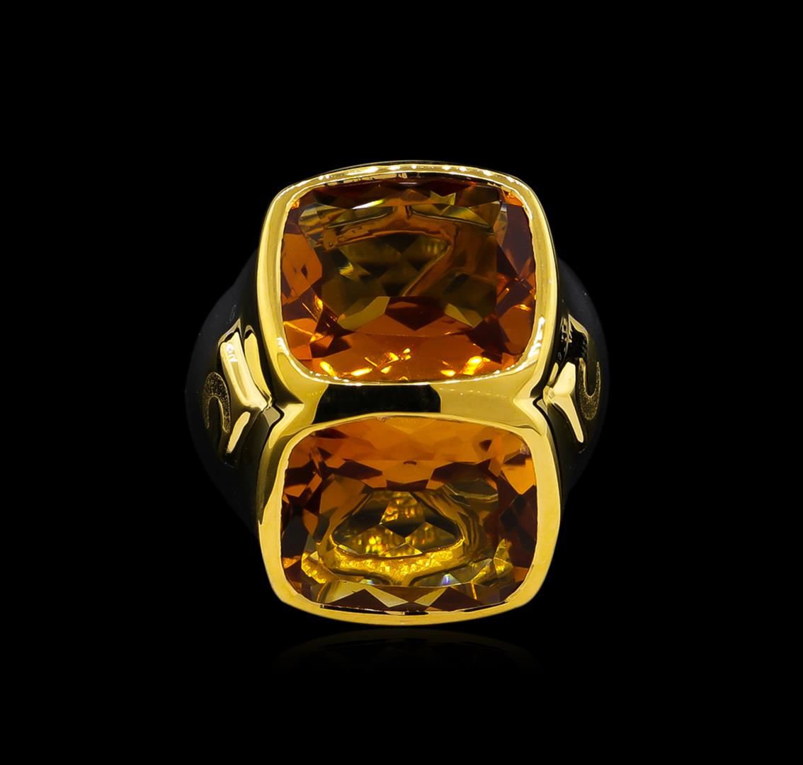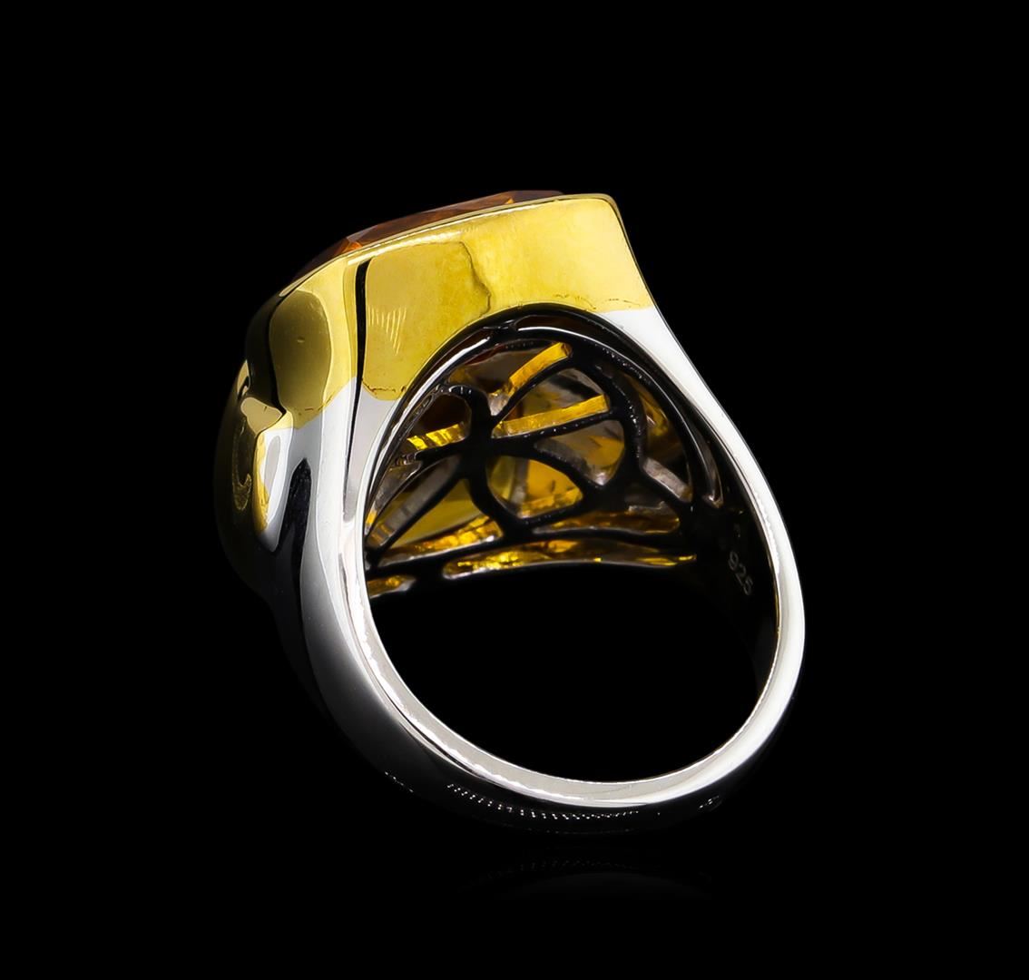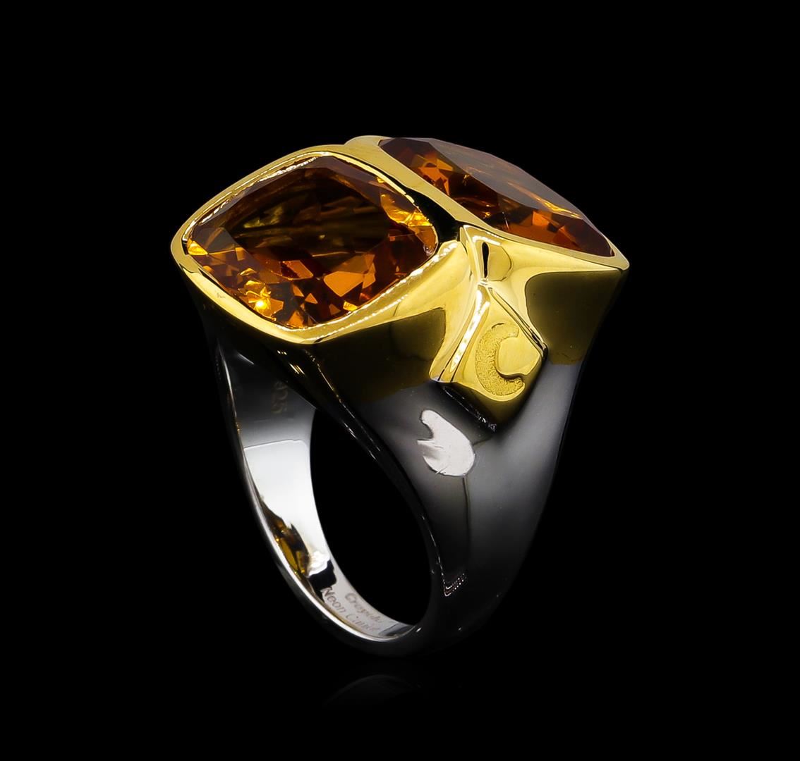 From the brand whose products have inspired creative expression for more than 110 years comes this beautiful ring by Crayola. This stunning piece of jewelry reflects the image and colorful personality of the Crayola brand. The Ring features .925 Silver With Rhodium Two-Tone weighing 6.5oz containing Neon Carrot Citrine (AAA) Cushion 12x10mm (With J BACK & Yellow Pan Rhodium) Laser engraved "C" logo on side. Total Citrine weight is 8.9ct.
