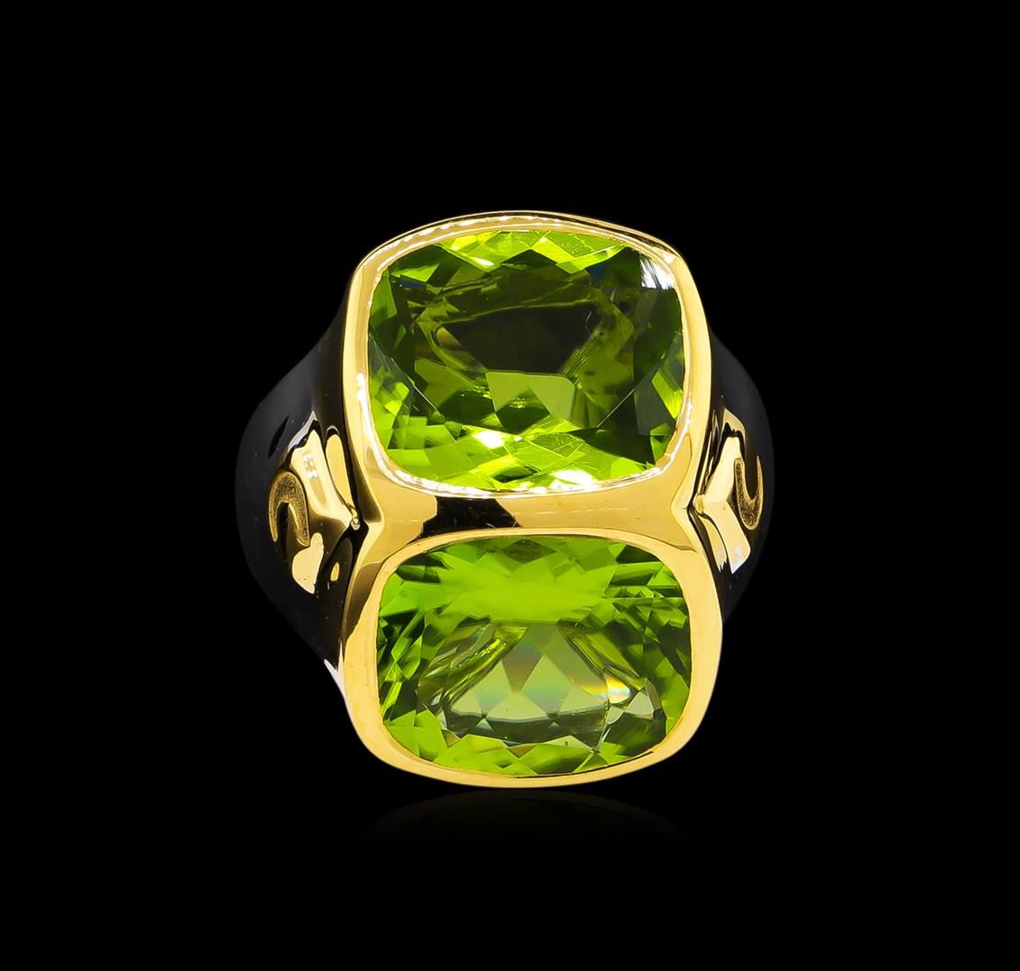 From the brand whose products have inspired creative expression for more than 110 years comes this beautiful ring by Crayola. This stunning piece of jewelry reflects the image and colorful personality of the Crayola brand. The Ring features .925 Silver With Rhodium Two-Tone weighing 6.5oz containing Granny Smith Apple Peridot (AAA) Cushion 12x10mm (With J BACK & Yellow Pan Rhodium) Laser engraved "C" logo on side. Total Peridot weight is 8.9ct.