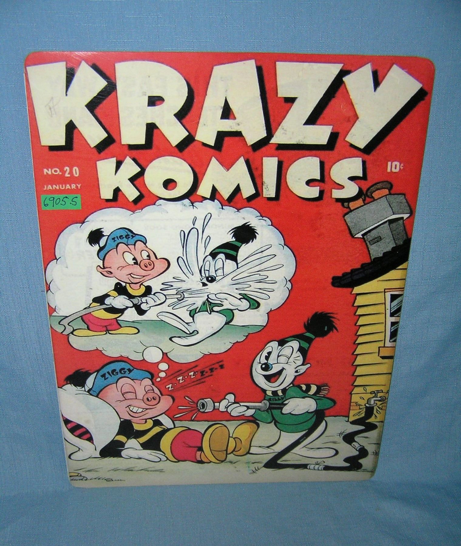 Crazy Comics retro style advertising sign printed on PVC hardboard these signs are auctioned for their decorative and display purposes 12 inches by 16 inches est. value $50.00-$60.00