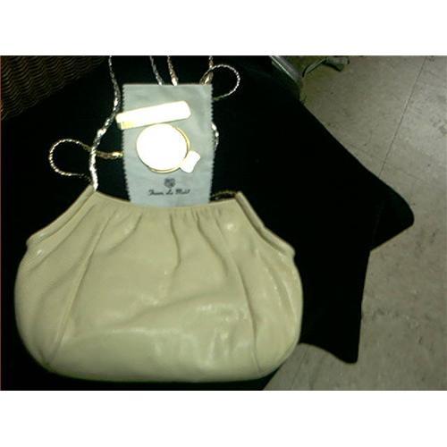 Cream Color Hand Bag with Gold Chain "Finessa LaModd" with Gold Mirror and Comb. This one is brand condition and comes with a velour bag to store it when you are not using it. Makes one fine gift item and a nice one for any collector. Came from estate of great purse collections. Hope you like it.