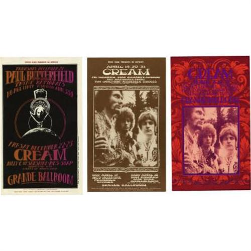 <B>Cream Grande Ballroom Postcard Group (Russ Gibb, 1967-68).</B></I> Three great, unused postcards from Detroit's Grande Ballroom (dates include December 21-23, 1967, April 17-21, 1968, and June 7-9, 1968), with cool designs from artist Gary Grimshaw. All three cards have the "Place Stamp Here" back, and are in Excellent condition.<BR><BR><b>Shipping:</b> Flat Material, Small (<a target="_blank" href="http://www.heritageauctions.com/common/shipping.php">view shipping information</a>)