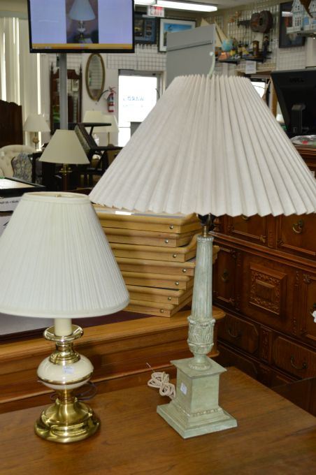 Cream and brass table lamp Rm 103 and a vintage Roman column style table lamp