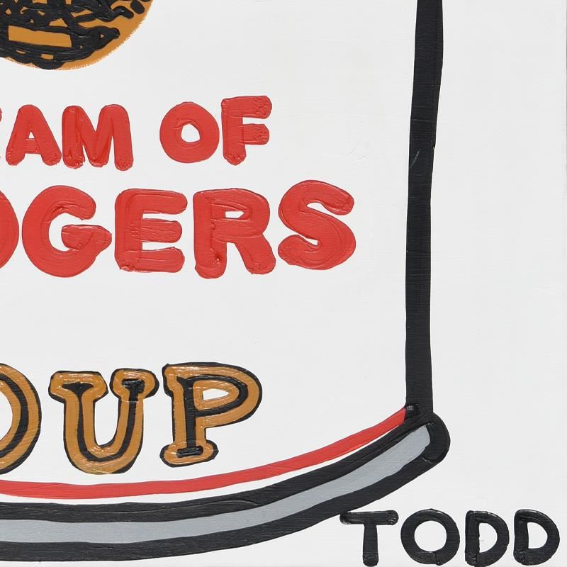 "Cream of Boogers Soup" is an original acrylic painting on gallery wrapped canvas by Todd Goldman, hand signed by the artist. Includes Letter of Authenticity. Measures approx. 36" x 48" (image). Due to the way this piece was stored there may be minor wear or signs of age (such as wear on the corners) but the piece is in overall good condition.
