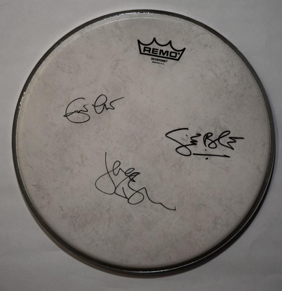 Cream 13 Inch Remo Drumhead. Signed: Eric Clapton, Ginger Baker, and Jack Bruce.