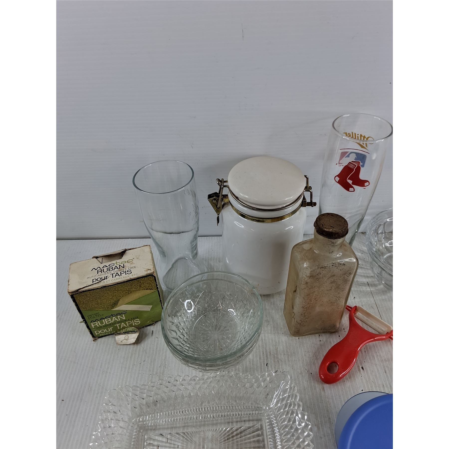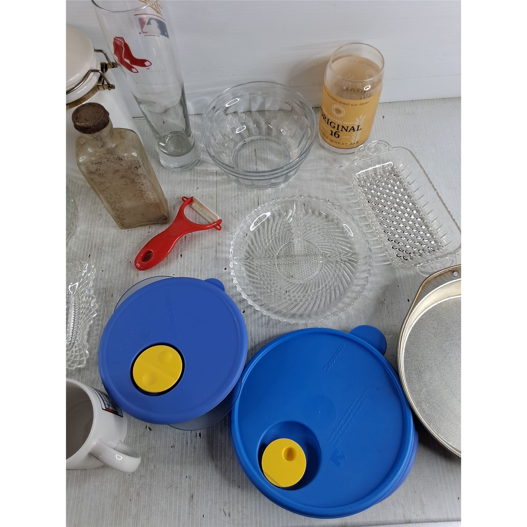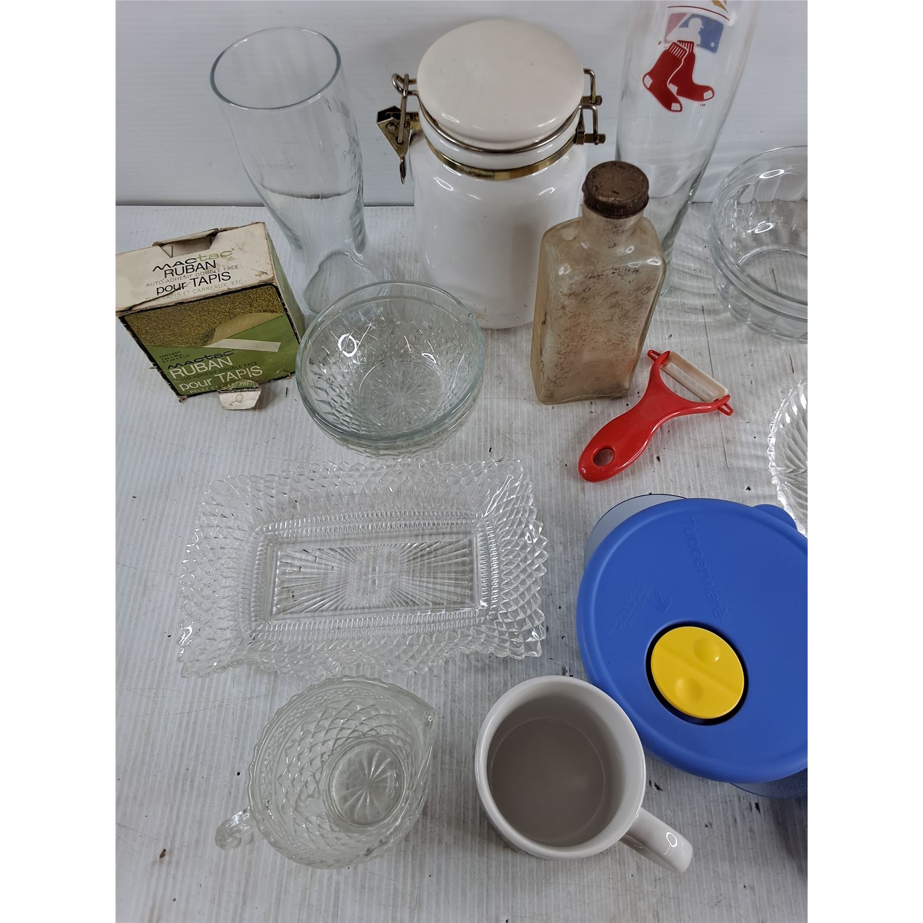 Creamer, Glass Bowls, Tupperware Container & Lids, Beersteins, Ruban Adhesive Tape, Potato Peeler