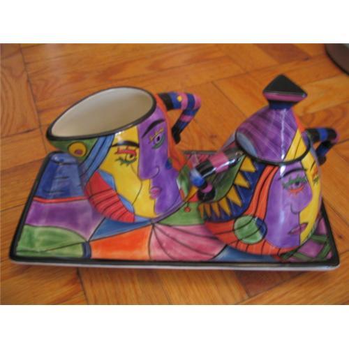 Two adorable Picasso Inspired creamer sets (2 in stock, Tray 10? Long, .5? High, Creamers, 5*5?) $65.
