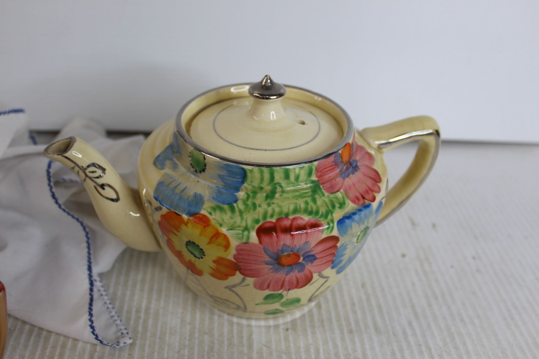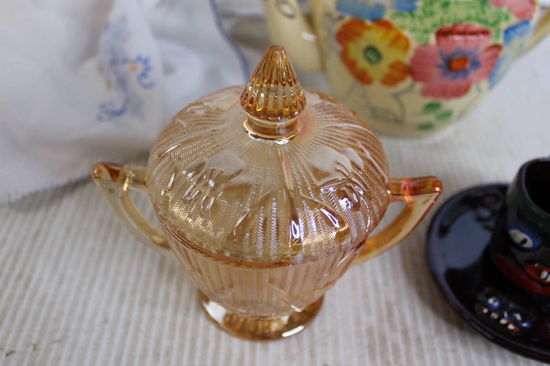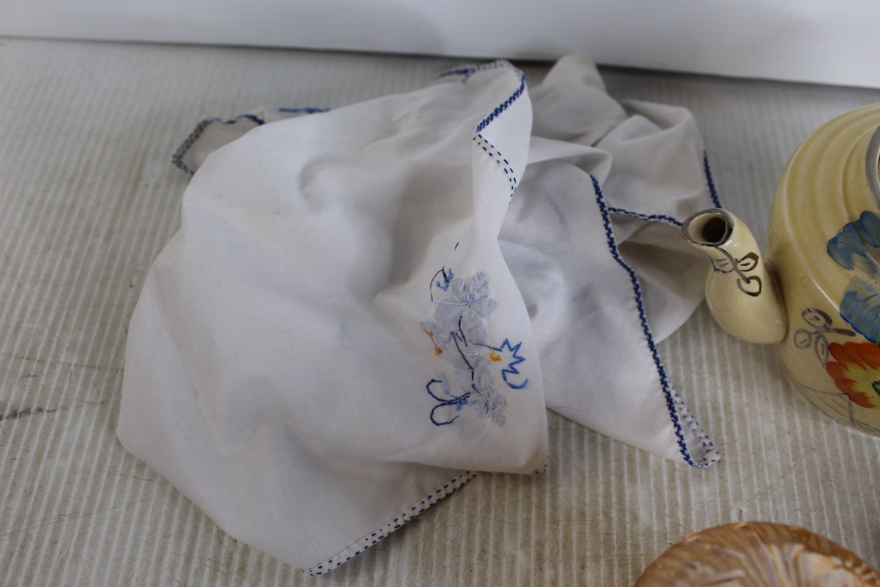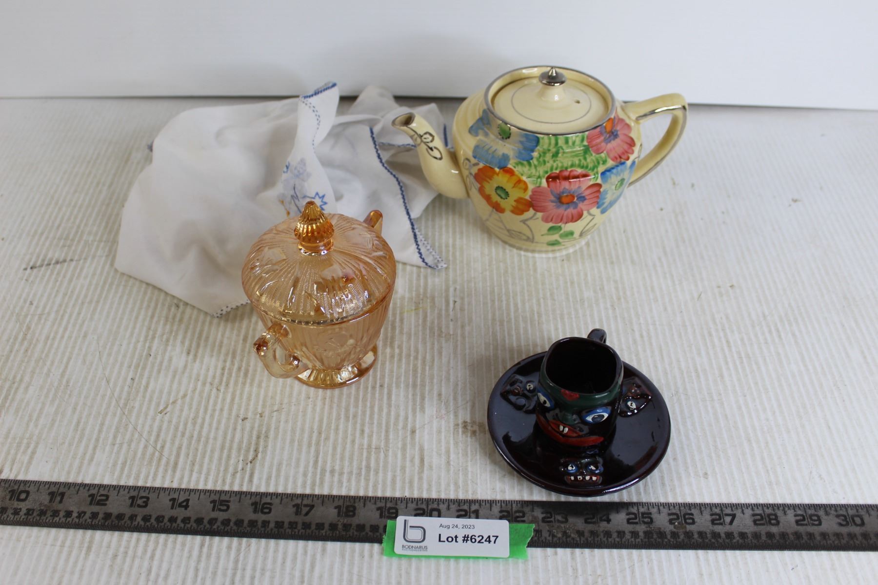 Creamsicle Holder with Handles, Teapot, Handmade Cup and Saucer, Handkerchief