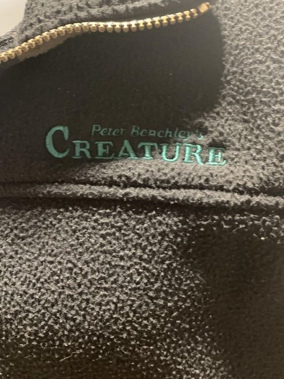 Original vest given to the cast & crew on the television miniseries 'Creature' (1998), based on the 1994 novel White Shark (re-published as Creature in 1997 concurrent with the film) by Jaws author Peter Benchley. The miniseries is about an amphibious shark-like monster terrorizing an abandoned secret military base and the people who live on the island where it is located.