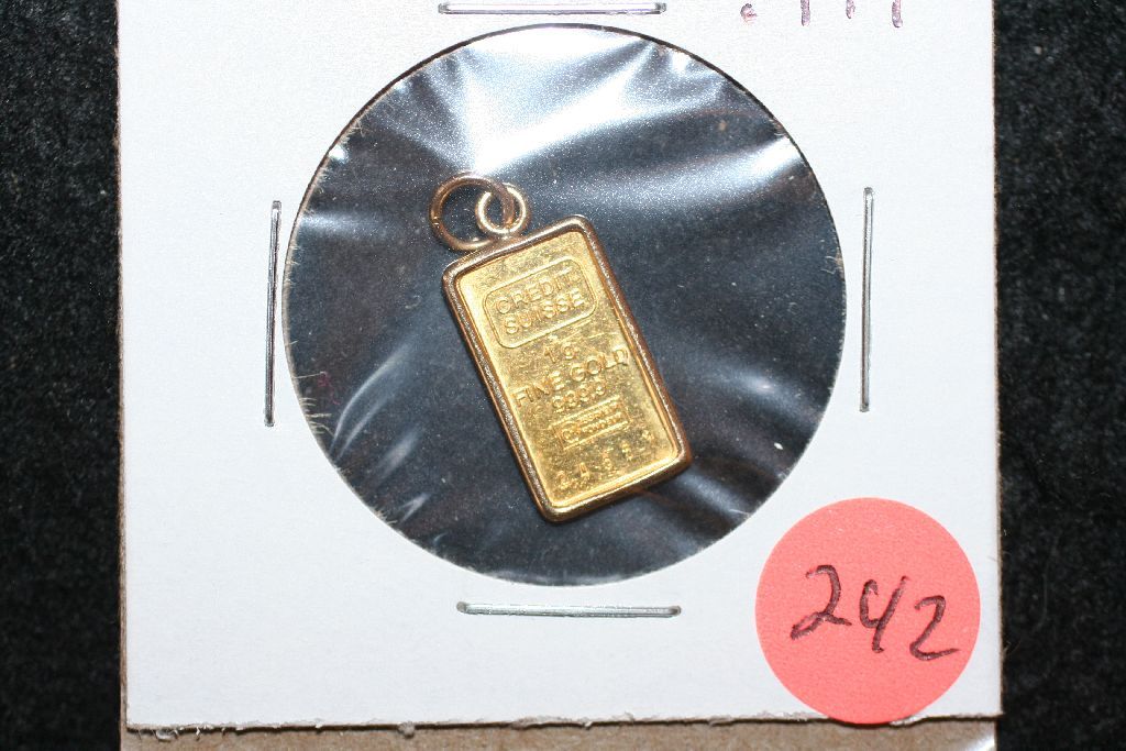 Credit Suisse Gold Ingot; 999.9 Fine Gold 1 Gram With Charm Loop