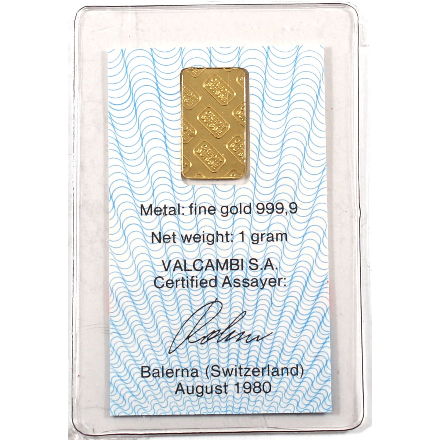 Credit Suisse Zurich 1 Gram .9999 Fine Gold Bar in Assay Certificate and Sealed Plastic (TAX Exempt)