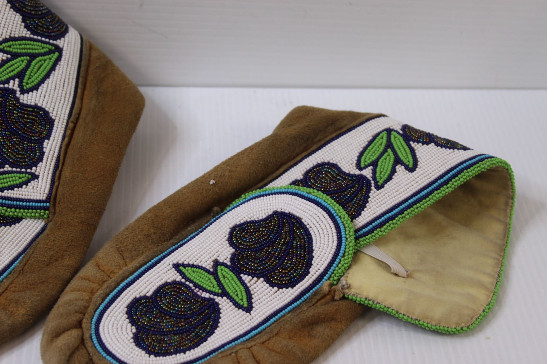 Cree Hand-Beaded Moccasins - Size Large - Good Shape