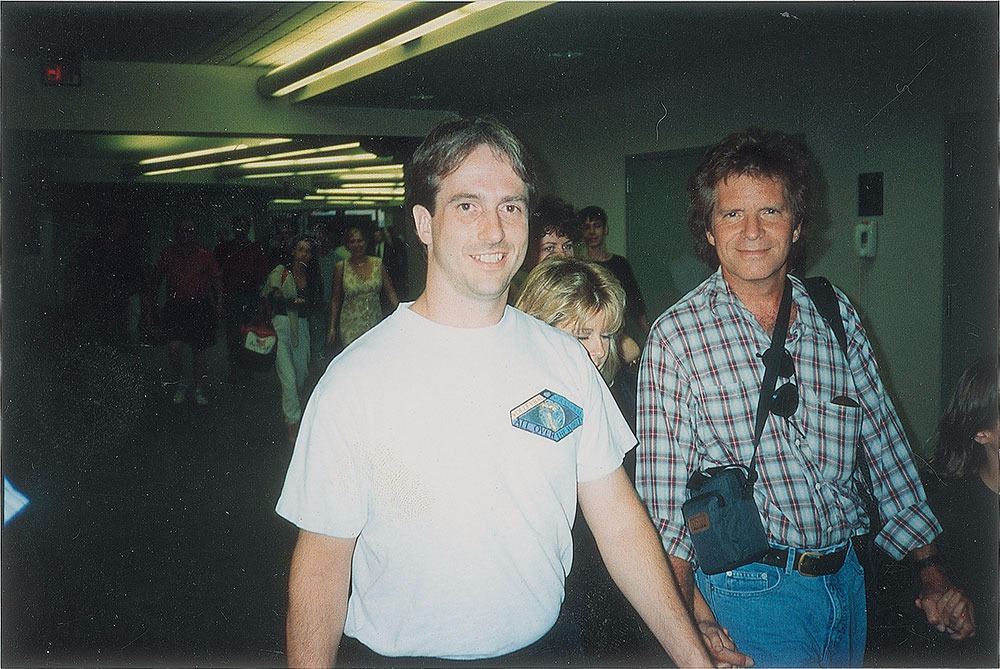 The Concert album signed on the front cover in blue paint pen by John Fogerty, Stu Cook, and Doug 'Cosmo' Clifford. In fine condition, with a faint ring of wear. The record is not included. Consignor notes that the Fogerty signature was obtained at the Cleveland Hopkins International Airport on July 12, 1997. Accompanied by photos taken at the time of the signings.
