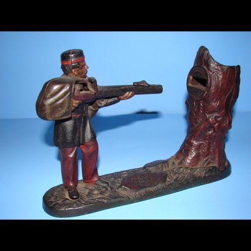 Good Condition. Very Good Paint. Missing Coin Trap. Man is unsteady to base. Patent Date Nov 1877. Weight 3 lbs.