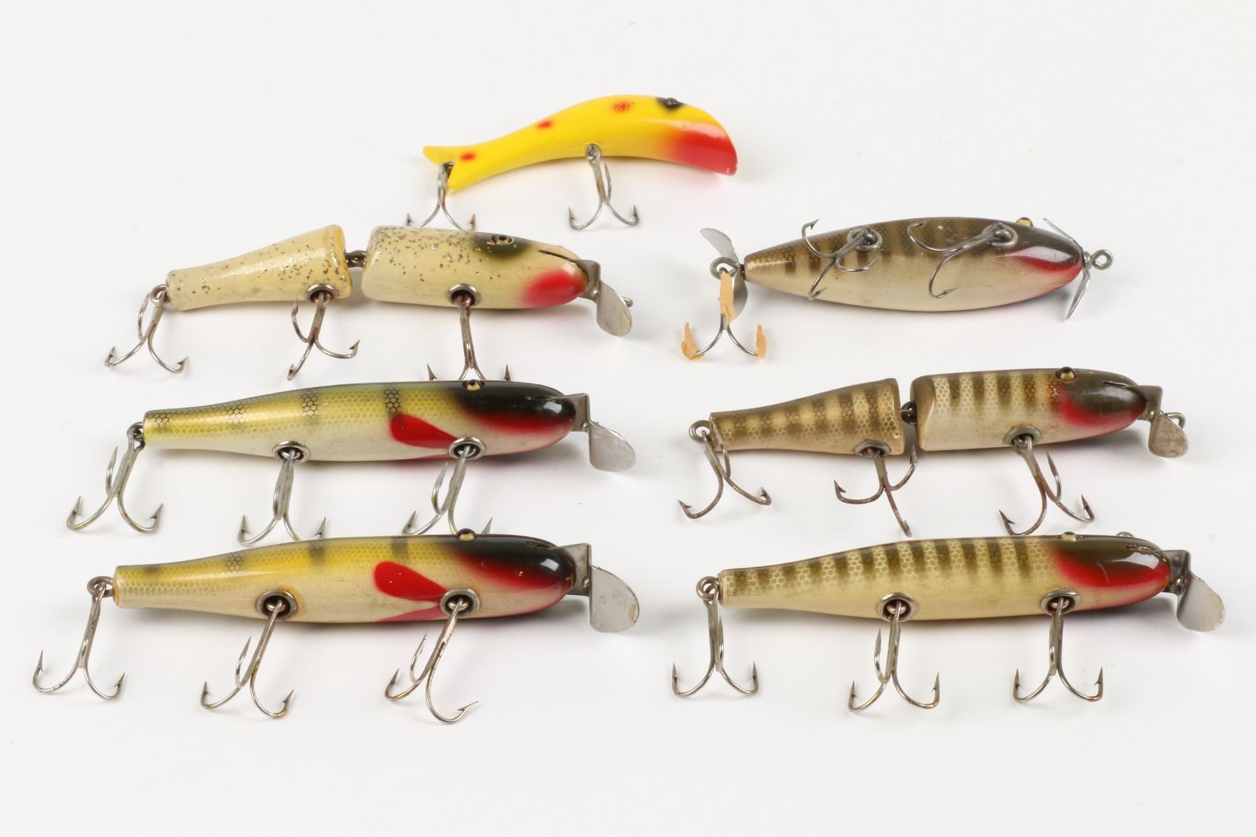 Creek Chub Bait Company, United States. Material: Plastic, Wood. Quantity: 7. Grade: G. 3" - 4.5". Est. $75-100.