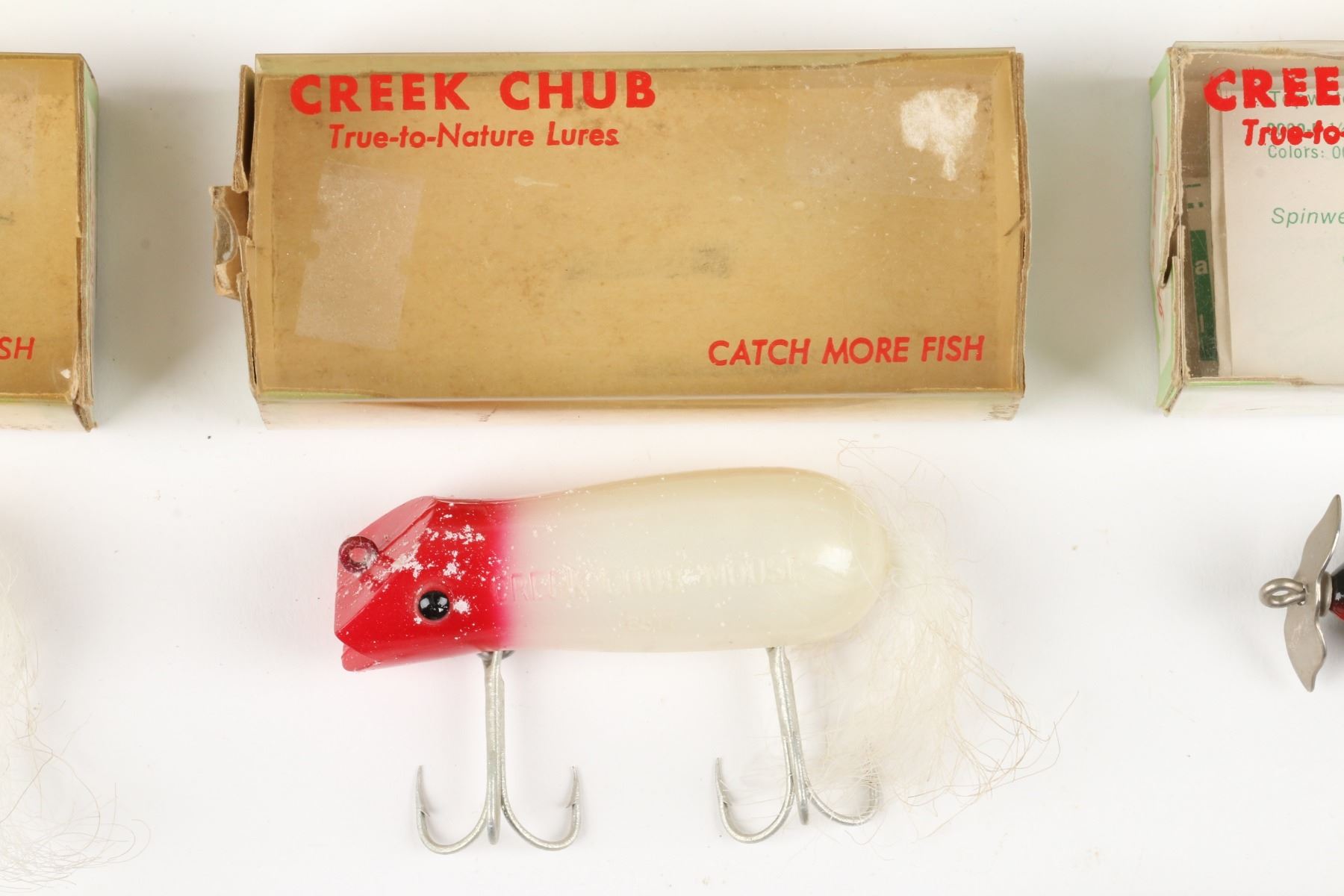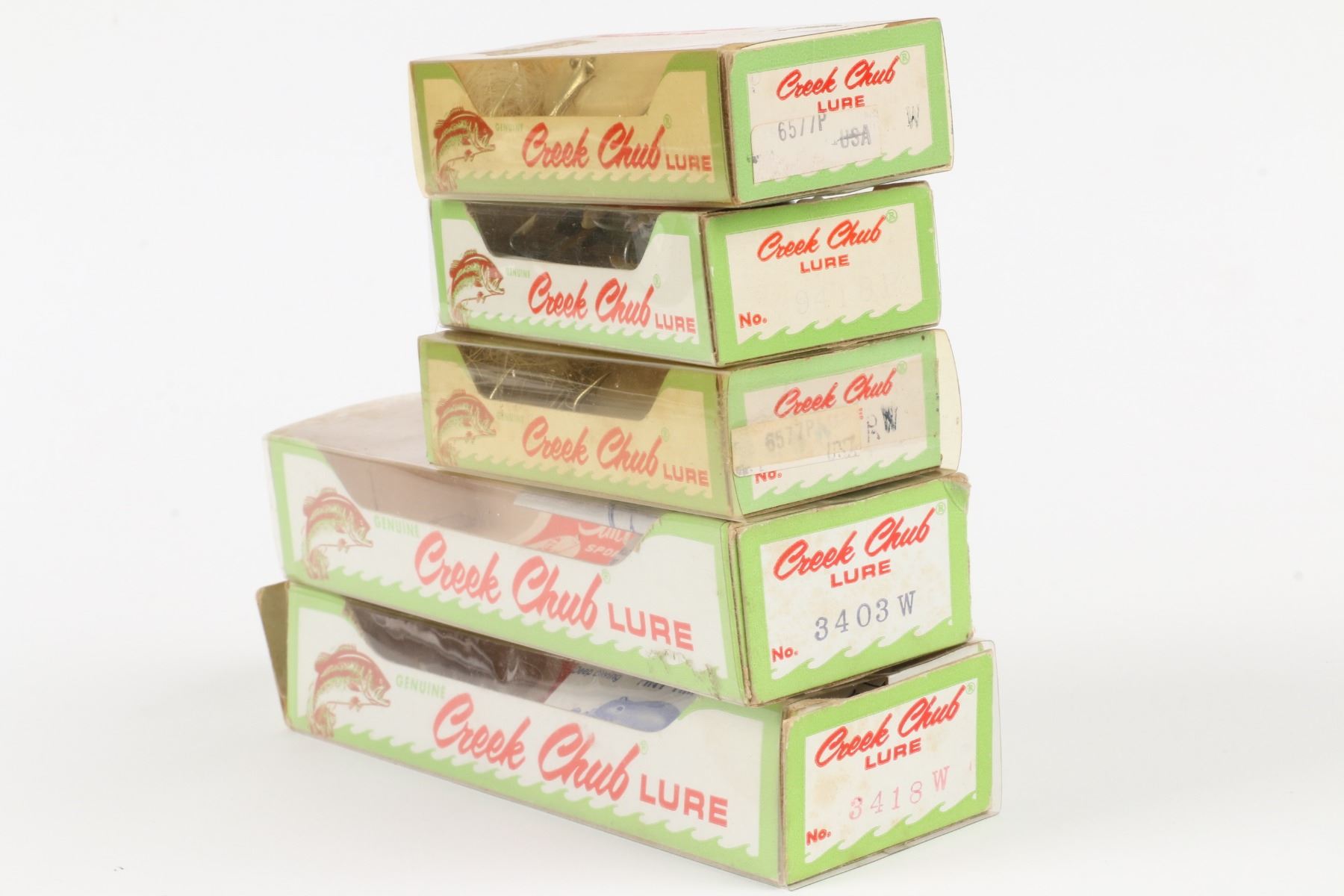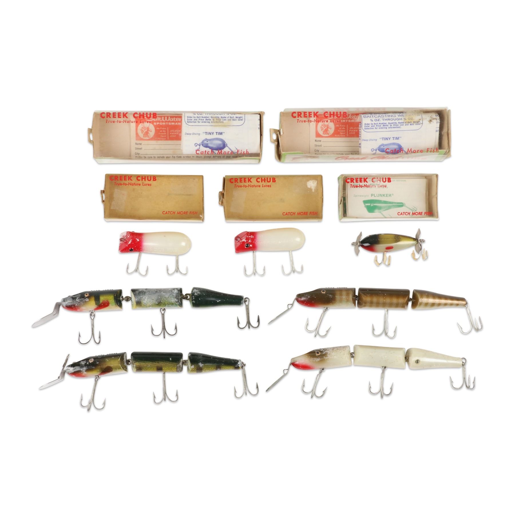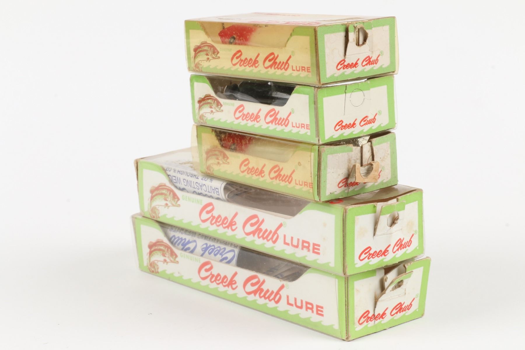 Creek Chub Bait Company, United States. 1950s. 5 Boxed. Material: Plastic. Quantity: 7. Grade: G. 2" - 6". Est. $100-125.