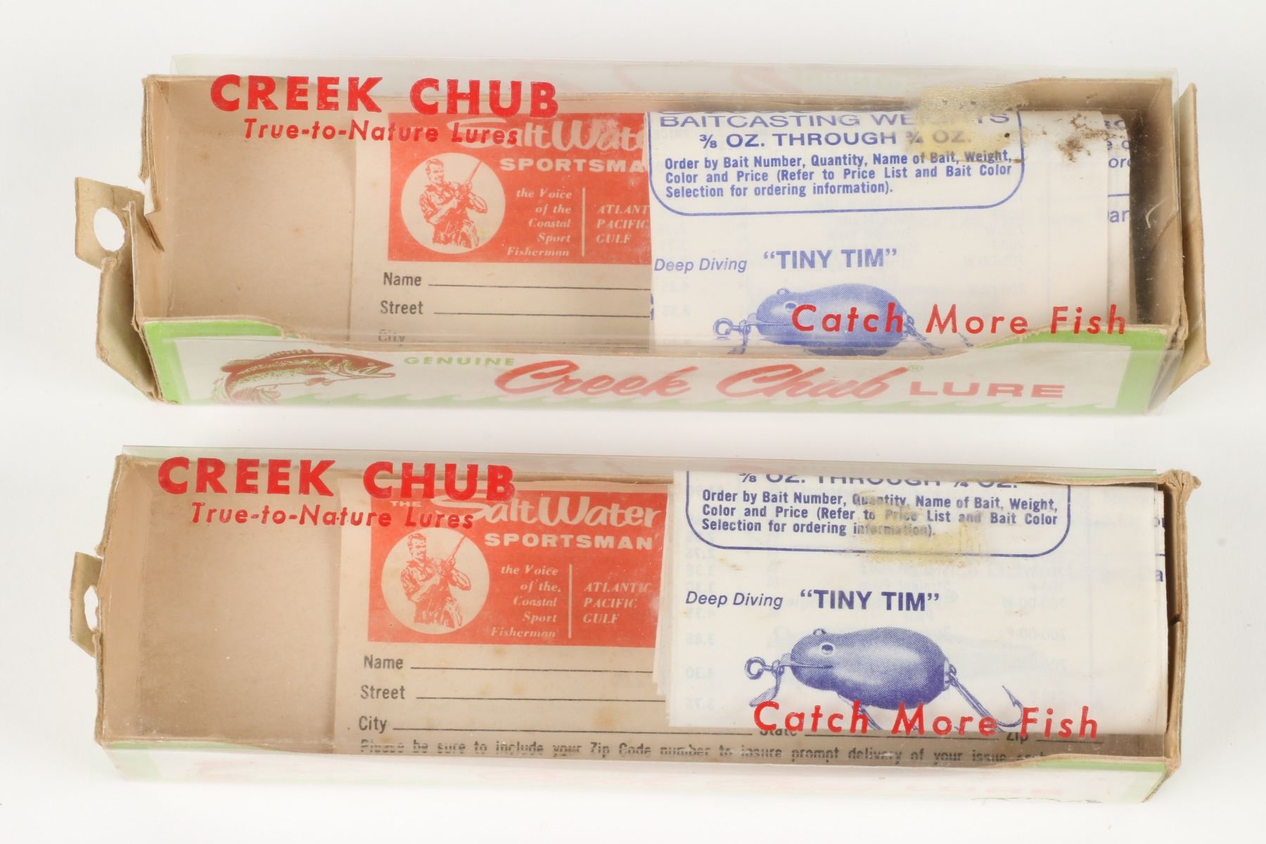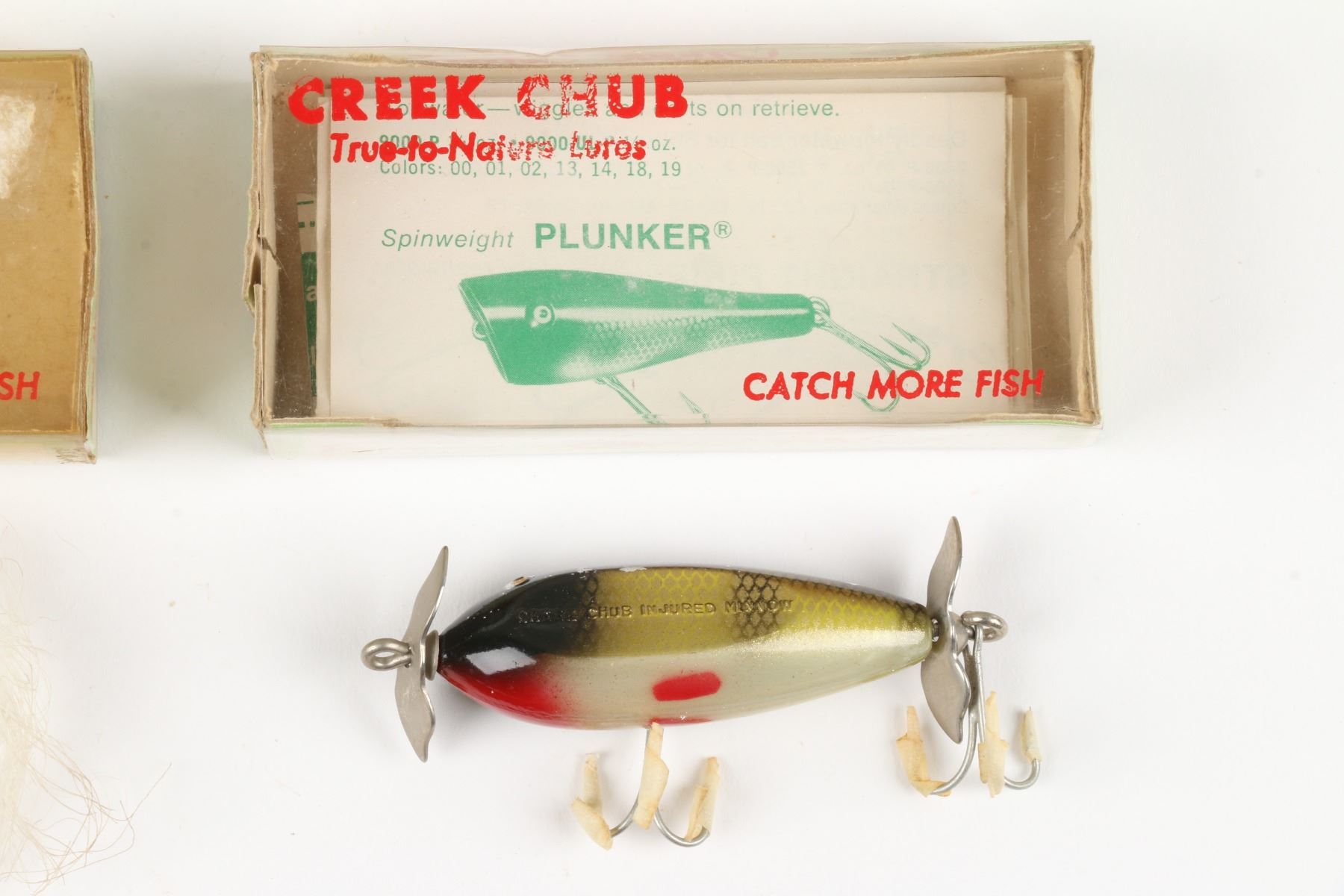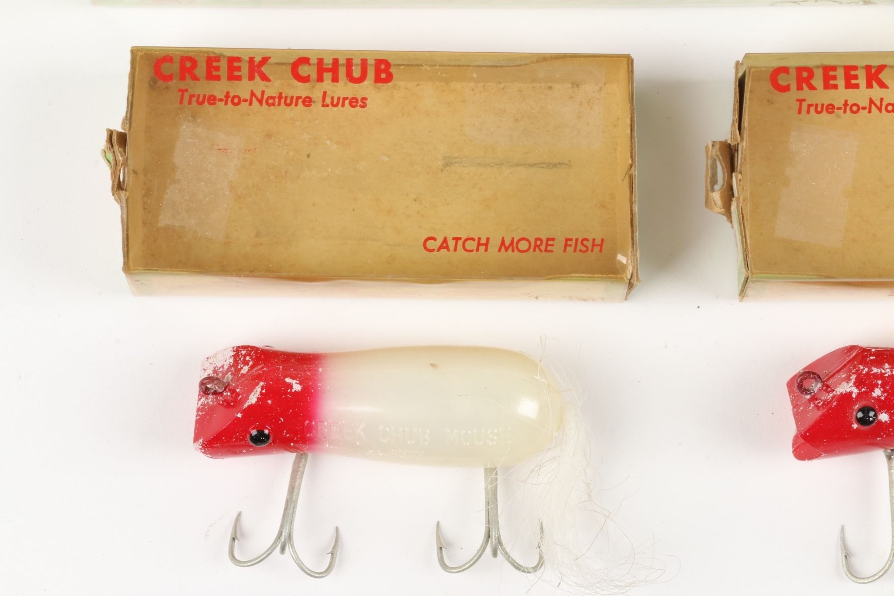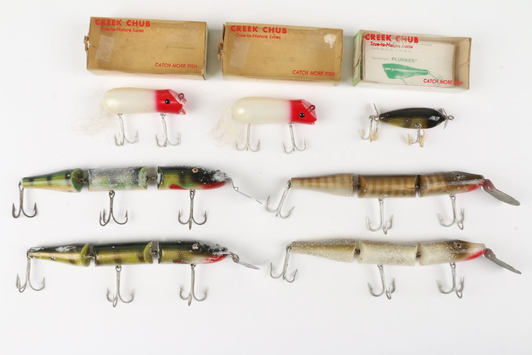 Creek Chub Bait Company, United States. 1950s. 5 Boxed. Material: Plastic. Quantity: 7. Grade: G. 2" - 6". Est. $100-125.