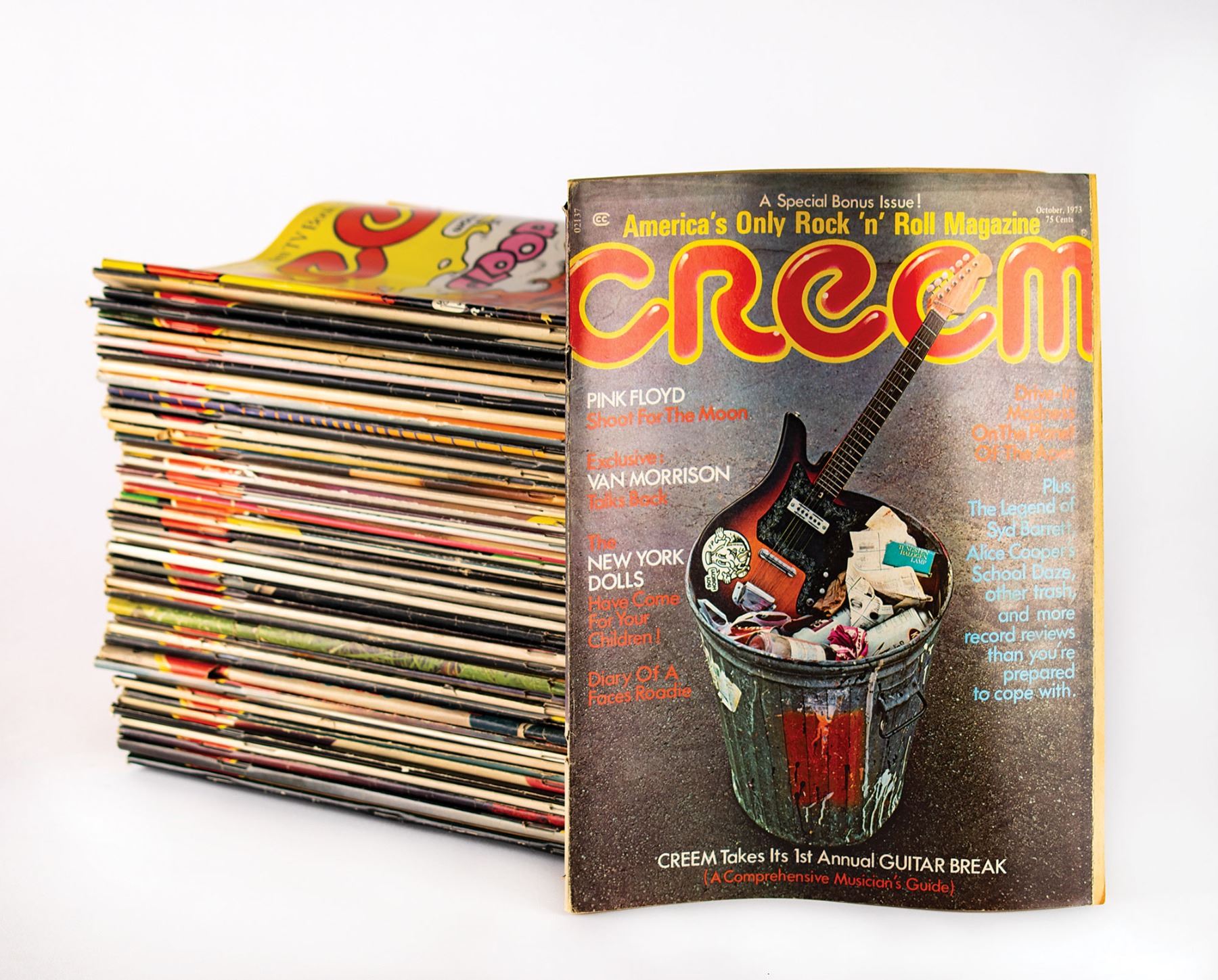 Tony Glover's archive of 50 issues of Creem magazine, ranging in date from 1971 to 1981, including the sought-after November 1971 issue featuring a cover designed by Robert Crumb. In overall very good condition, with vertical bends to many magazines. Glover was a regular contributor to Creem from 1974–1976.