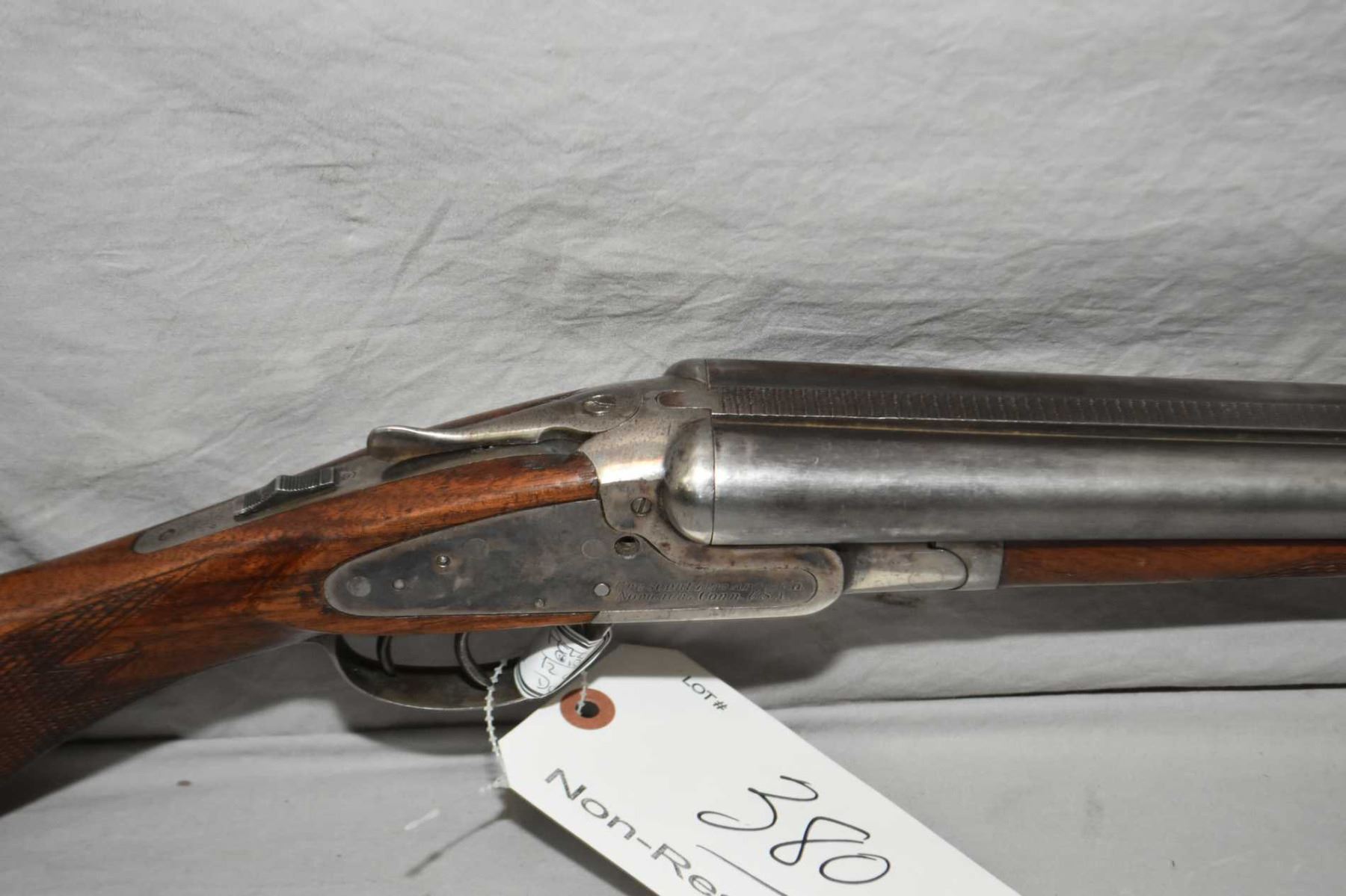 Crescent Arms Co. Norwich, Conn. Model Peerless .12 Ga Hammerless Side By Side Shotgun w/ 30" bbls [ faded blue finish, traces of case color on plates, and receiver, missing screw right side, w/ checkered pistol grip stock and forend, black grip cap and butt plate, some marks to wood and metal ] Ser # 240092