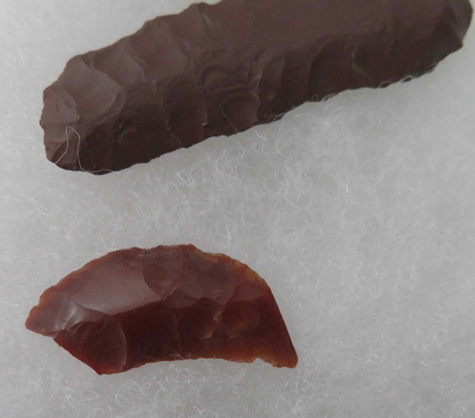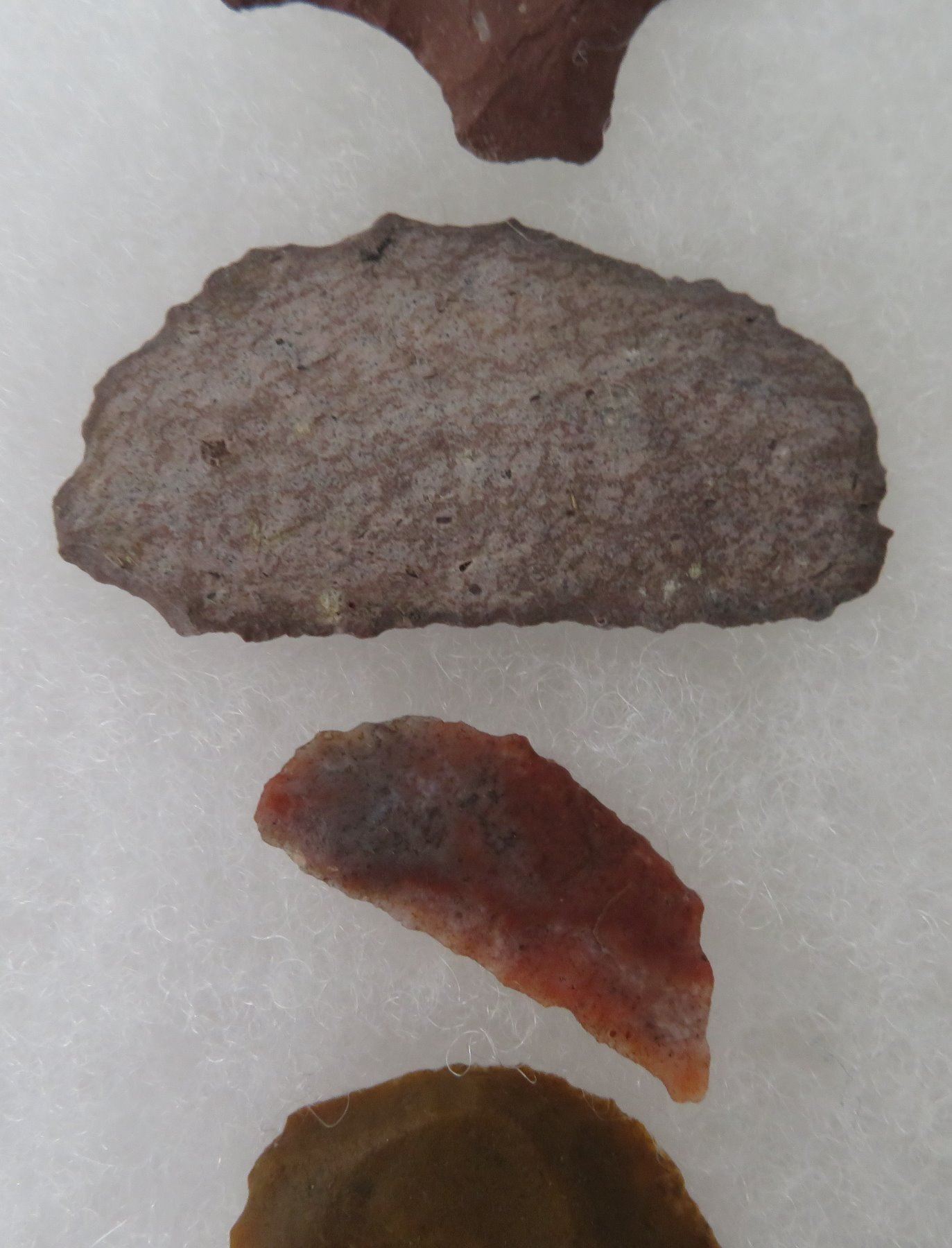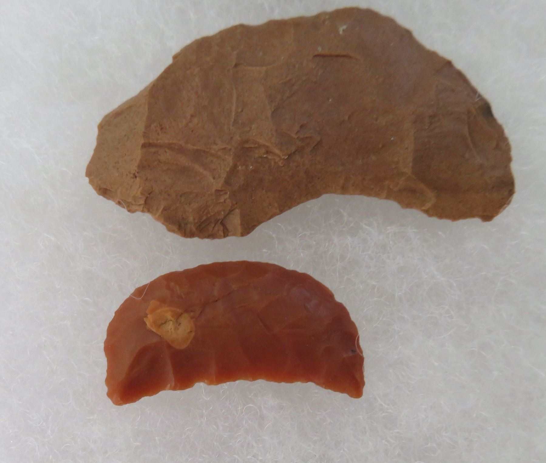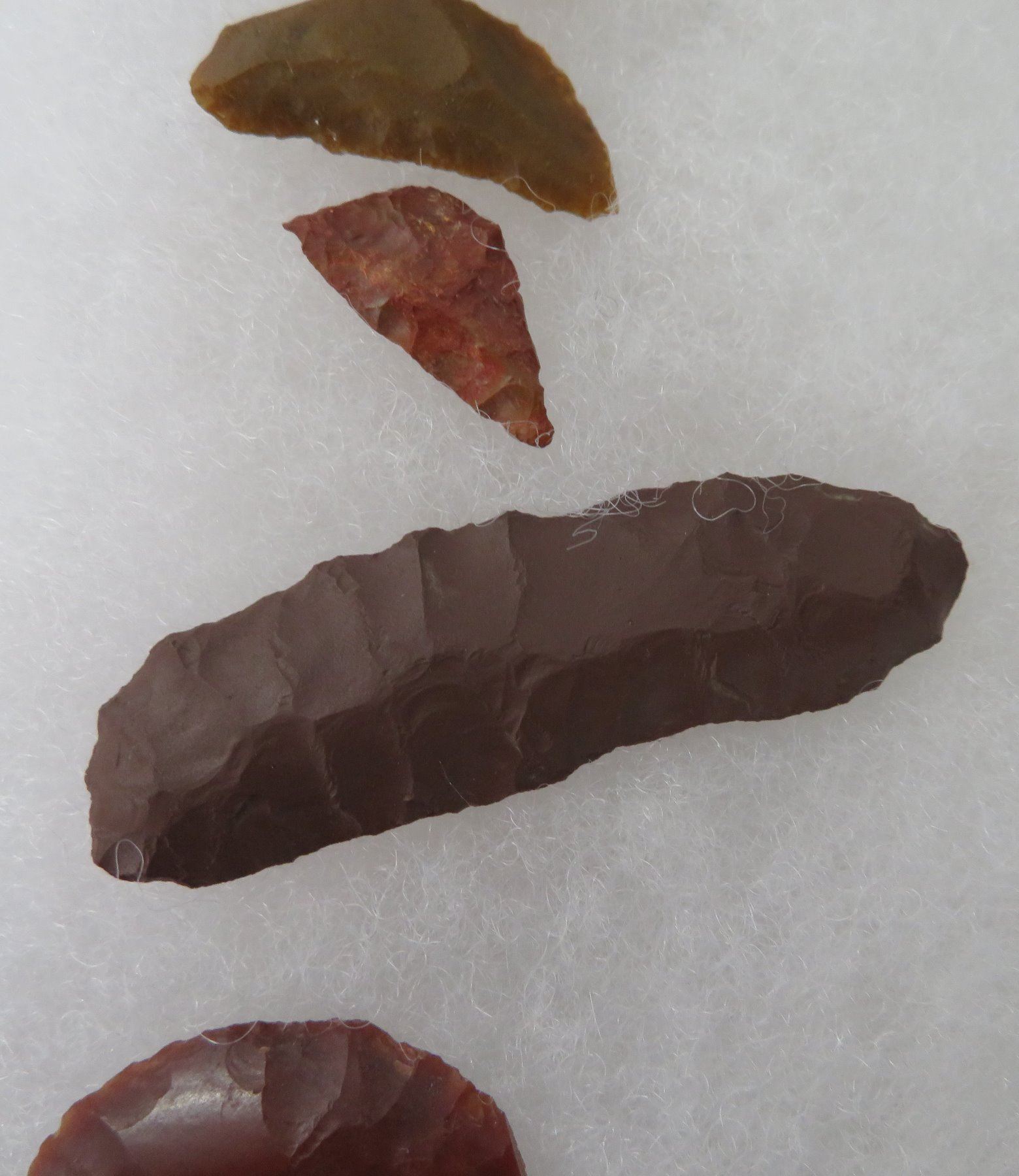 Crescent Collection, pre-historic items. Made of chert-stone, the items measure from 7/8" to 2 1/4" long. Fresno County, California. From a 60-year-old California collection. Frame not included. Condition: As found, see images. Shipping: $20.00 w/insurance and signature, due to value.