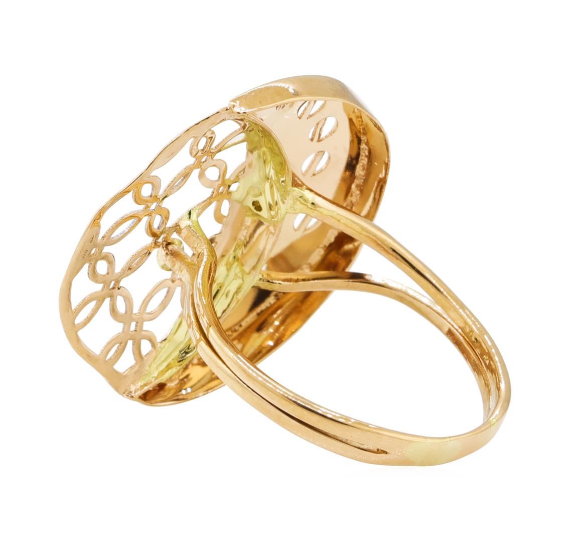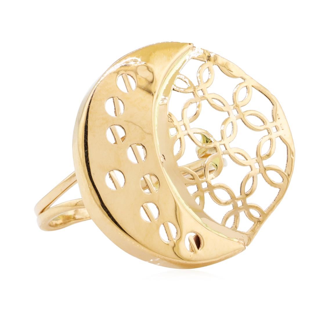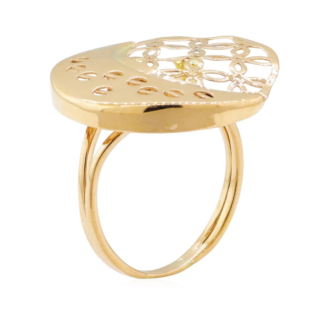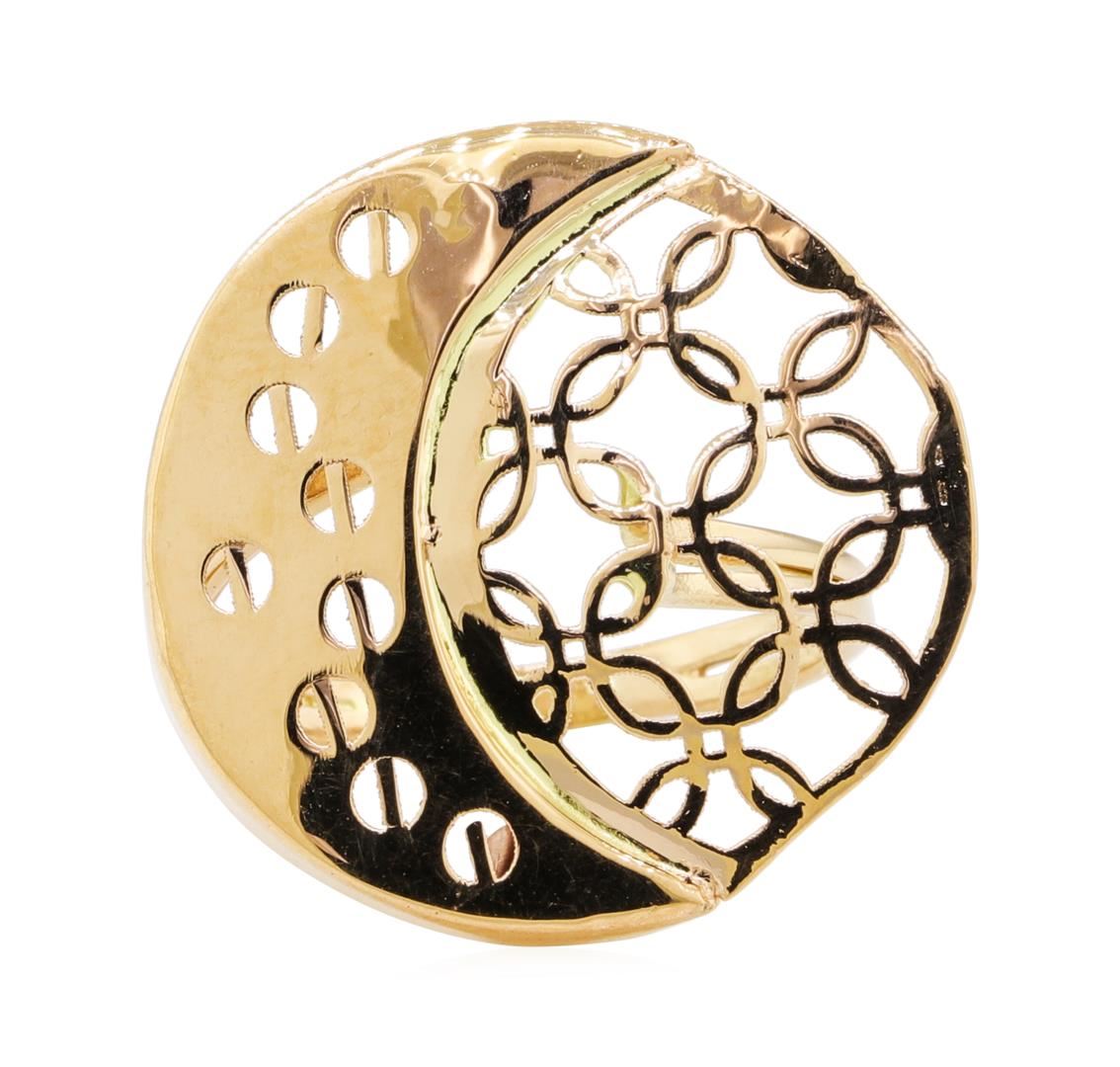 One crescent moon motif ring featuring: 14KT yellow gold weighing 4.0 grams.