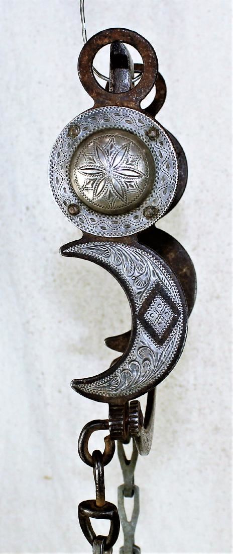 Early California style tall half breed bit with deeply engraved silver, showing nice condition and style.
