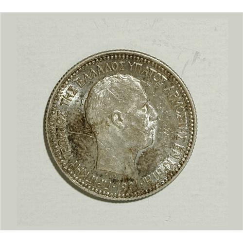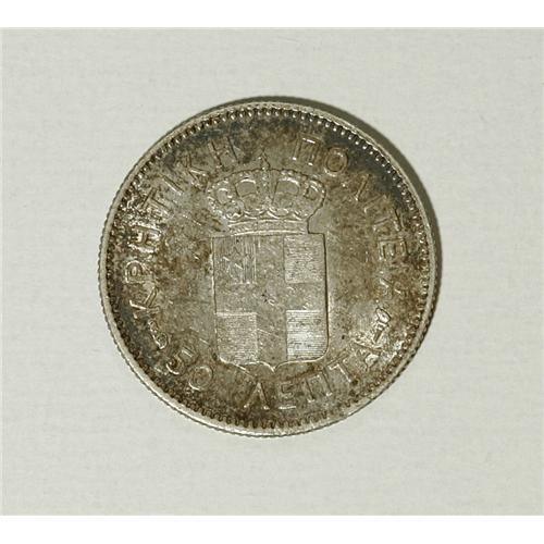 <B>Prince George 50 Lepta 1901, </B></I>KM6, nicely toned AU, an attractive original coin with considerable mint luster, just a few faint scratches in the exposed fields. An unusually high grade example for this type.<BR><BR><b>Shipping:</b> Coins & Currency (<a target="_blank" href="http://www.heritageauctions.com/common/shipping.php">view shipping information</a>)