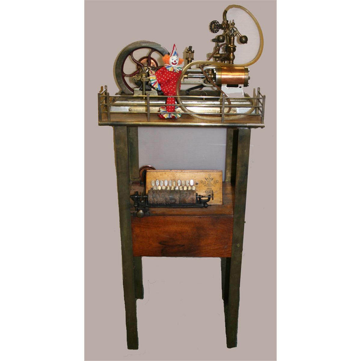 Cretor's Steam Engine as used in Cretor's Popcorn wagons attached to a cob organ music machine.