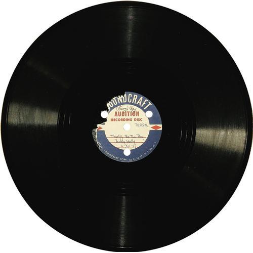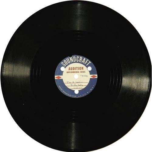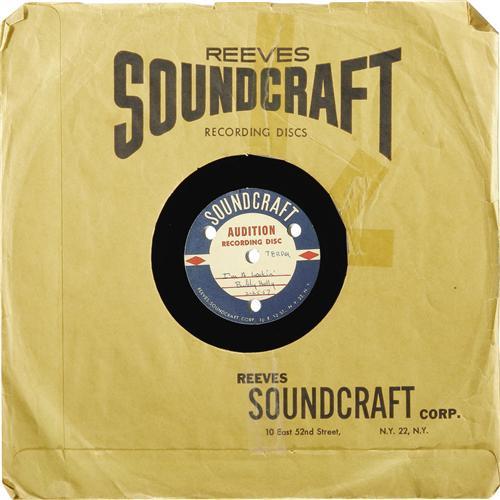 <B>Buddy Holly "That'll Be the Day"/ "I'm A Lookin" 78 Acetate Soundcraft (1957).</B></I> This two-sided acetate is of the historic recording of the Cricket's first big hit (the label attributes "Buddy Holly"), recorded February 25, 1957 at Norman Petty's studios in Clovis, New Mexico. "I'm A Lookin" became "I'm Lookin' For Someone to Love." There's some damage on the Soundcraft label of the A-side and "Larry's Copy" written in ink. This "Larry" was Buddy's brother. The disc is clean and attractive, and it plays VG-EX 6.<I>From Maria Elena Holly's personal collection.</B></I>