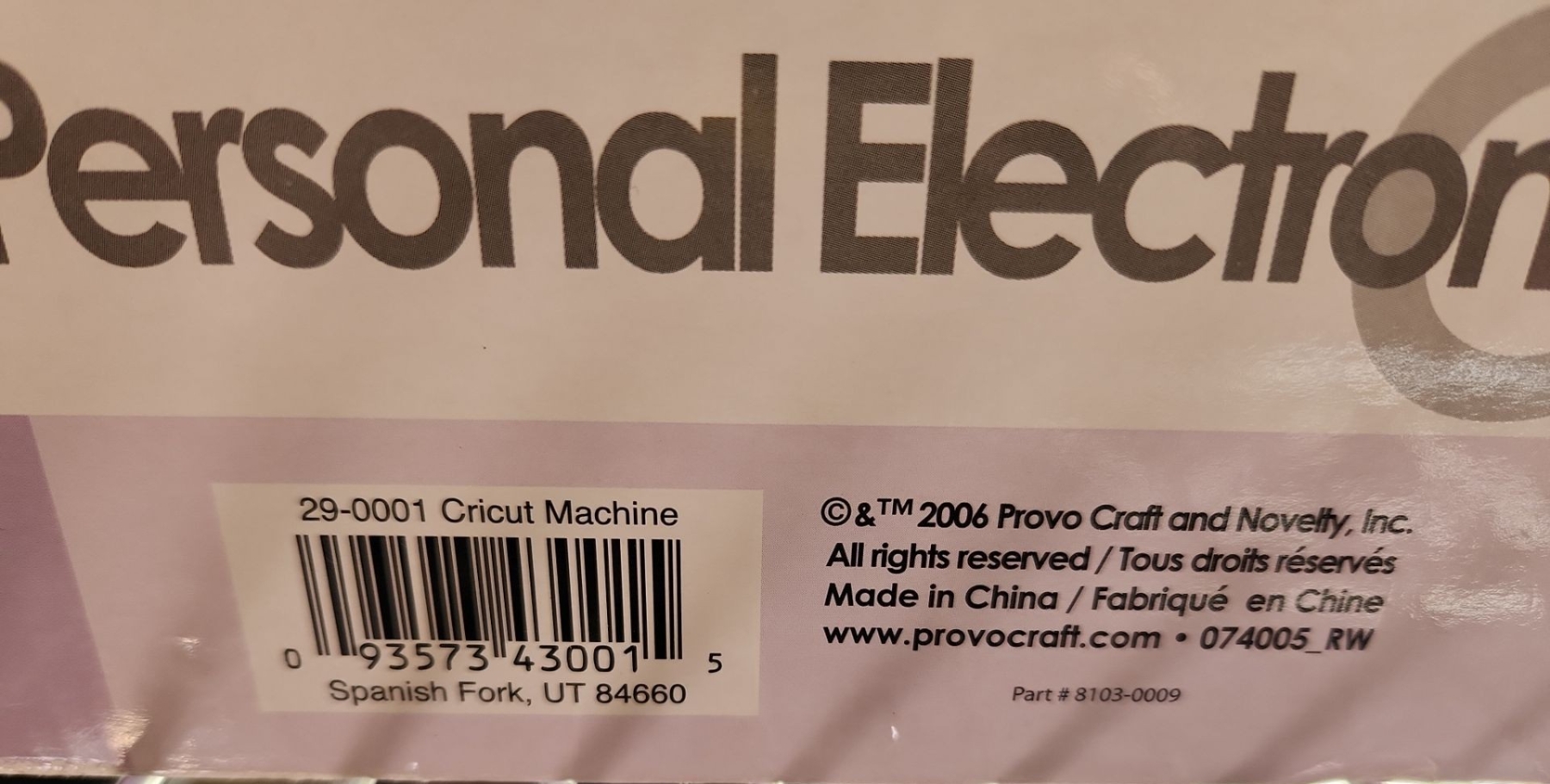 Cricut Personal Electronic Cutter (Needs New Power Cord) Model 29-0001