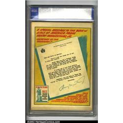 Crime Does Not Pay #23 (Lev Gleason, 1942) CGC VF- 7.5 Off-white pages. Featured here is the second crime comic ever produced, and Overstreet lists it as scarce. This terrific book features photos of three famous gangsters down its spine, John Dillinger, Baby Face Nelson and John Hamilton. Charles Biro created a prison riot for this classic cover. Overstreet 2002 VF 8.0 value = $795. Important notice: We expect to be auctioning lots at the rate of 200-250 per hour. Sometimes eBay Premier live bid software cannot keep up with that pace, so we strongly recommend that you place a realistic proxy bid now as insurance to avoid disappointment. Also please note that all Heritage/CAA lots purchased through eBay Premier carry a 20% Buyer's Premium.