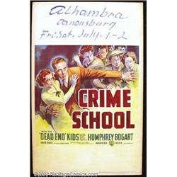 Crime School (Warner Brothers 1938). Window Card (14" X 22") Bogarts the good guy in this story of his efforts to reform the "Dead End Kids". This lovely poster is the all artwork image similar to the very rare three sheet. The one sheet and many of the other formats are the arguably less attractive photo montage. Very Fine. Important notice: We expect to be auctioning lots at the rate of 200-250 per hour. Sometimes eBay Premier live bid software cannot keep up with that pace, so we strongly recommend that you place a realistic proxy bid now as insurance to avoid disappointment. Also please note that all Heritage/CAA lots purchased through eBay Premier carry a 20% Buyer's Premium.