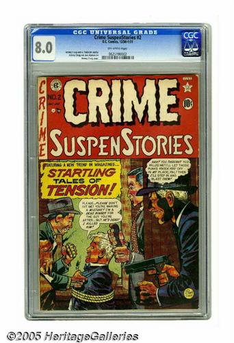 <B>Crime SuspenStories #2 (EC, 1950) CGC VF 8.0 Off-white pages.</B></I> Johnny Craig cover. Interior art by Craig (two stories), Graham Ingels, and Jack Kamen. Overstreet 2005 VF 8.0 value = $435. CGC census 7/05: 2 in 8.0, 6 higher.