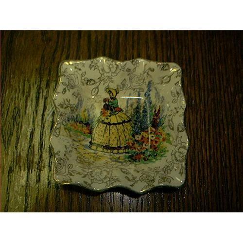 Very Old Dish of Lady with Gold leaf. Signed by James Kent LTD. Longton Made in England. "Crinoline lady" 3087.</em></td>