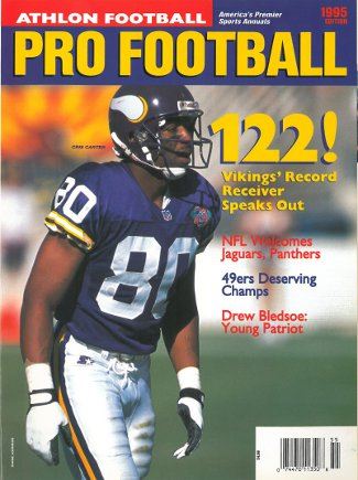 This is an Athlon Sports 1995 Pro Football Magazine with Minnesota Vikings Wide Receiver Cris Carter on the cover. This Preview has team analysis, predictions, lineups, rosters and more for the 1995 Season