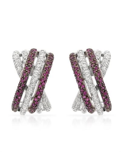 Criss Cross Ruby & Diamond Earrings in 14K White Gold | 173261 Grams, featuring 0.39 Ruby ct 92 0.78 ct 140 ct 14 ct