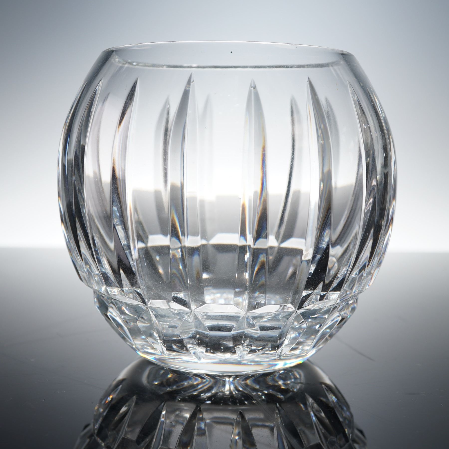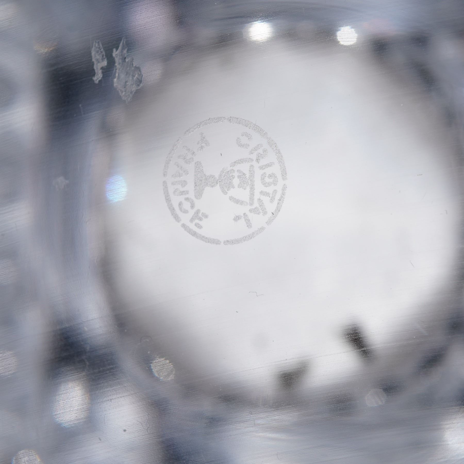 Elegant clear crystal vase featuring a flared rim and faceted square base with sculpted vertical ridges at the waist. The precision-cut design highlights the clarity and brilliance of fine French crystal. Marked Cristal France on the underside. A refined decorative accent ideal for showcasing floral arrangements or as a standalone centerpiece.