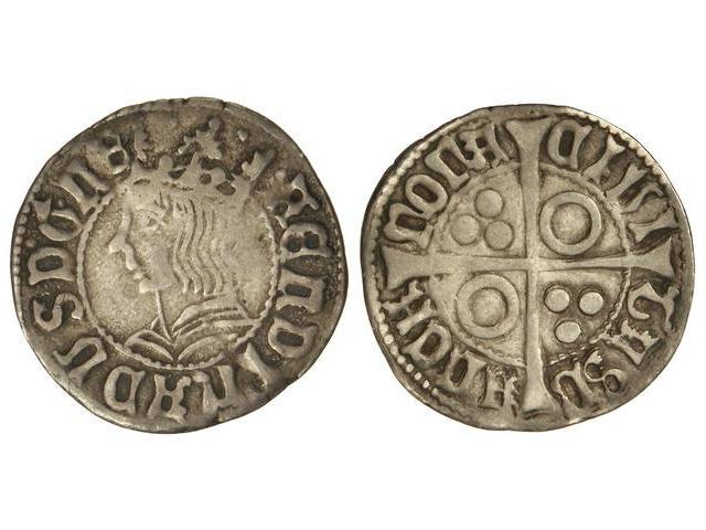 Croat. - FERRAN II. - BARCELONA. - Anv.: FERDINADVS¶D¶G¶RE. Efigie. Rev.: CIVI-TASB-ARCH-NONA. Anillos en 2º y 3er espacios. (Acuñación floja). Cru.VS-1139. MBC. - -