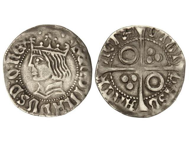 Croat. FERRAN II. BARCELONA. Anv.: FERDINADVS:D:G:REX. Busto a izquierda. Rev.: CIUI-TASB-ARCK-NONA. Anillos en 1er y 4º espacios. (Levemente repintada en reverso). Ba-729; Cru.VS-1139.1. MBC.