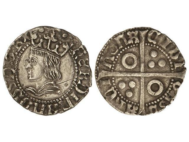 Croat. FERRAN II. BARCELONA. Anv.: FERDINANDVS.D.G:RX. Rev.: CIUI-TASB-ARCI-NONA. Roel en 1er y 4º cuartel. Buen ejemplar. (Leve rayita). Cru.VS-1141.7. MBC+.