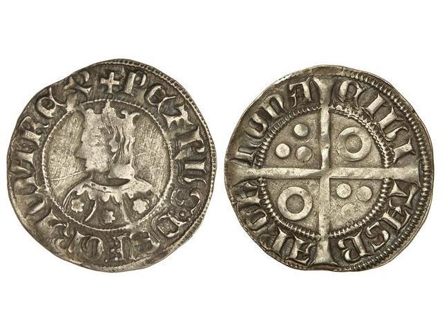 Croat. - PERE III. - BARCELONA. - Anv.: ¶PETRUS¶DEI¶GRACIA¶REX. Esfinge coronada a izquierda. Vestido con tres flores de 6 pétalos. Rev.: CIVI-TASB-ARCK-NONA. Anillos en 2º y 3er espacios. Cru.VS-403. MBC. - -