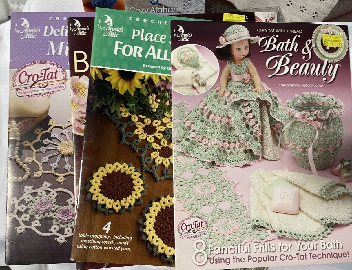 Crochet Tatting and Rolled Crochet Pattern Book Sets and Hooks Kit
